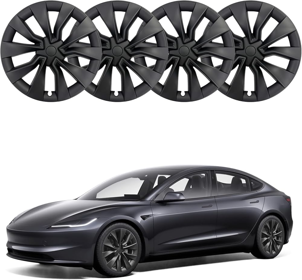 4Pcs Wheel Cover 19 inch for Tesla Model 3 Highland 2023 2024 2025 Hubcaps Matte Black Wheel Covers Rim Hubcap Protectors Wheel Hub Caps for Model 3 Highland ABS Accessories (Turbine Style, 19 Inch)