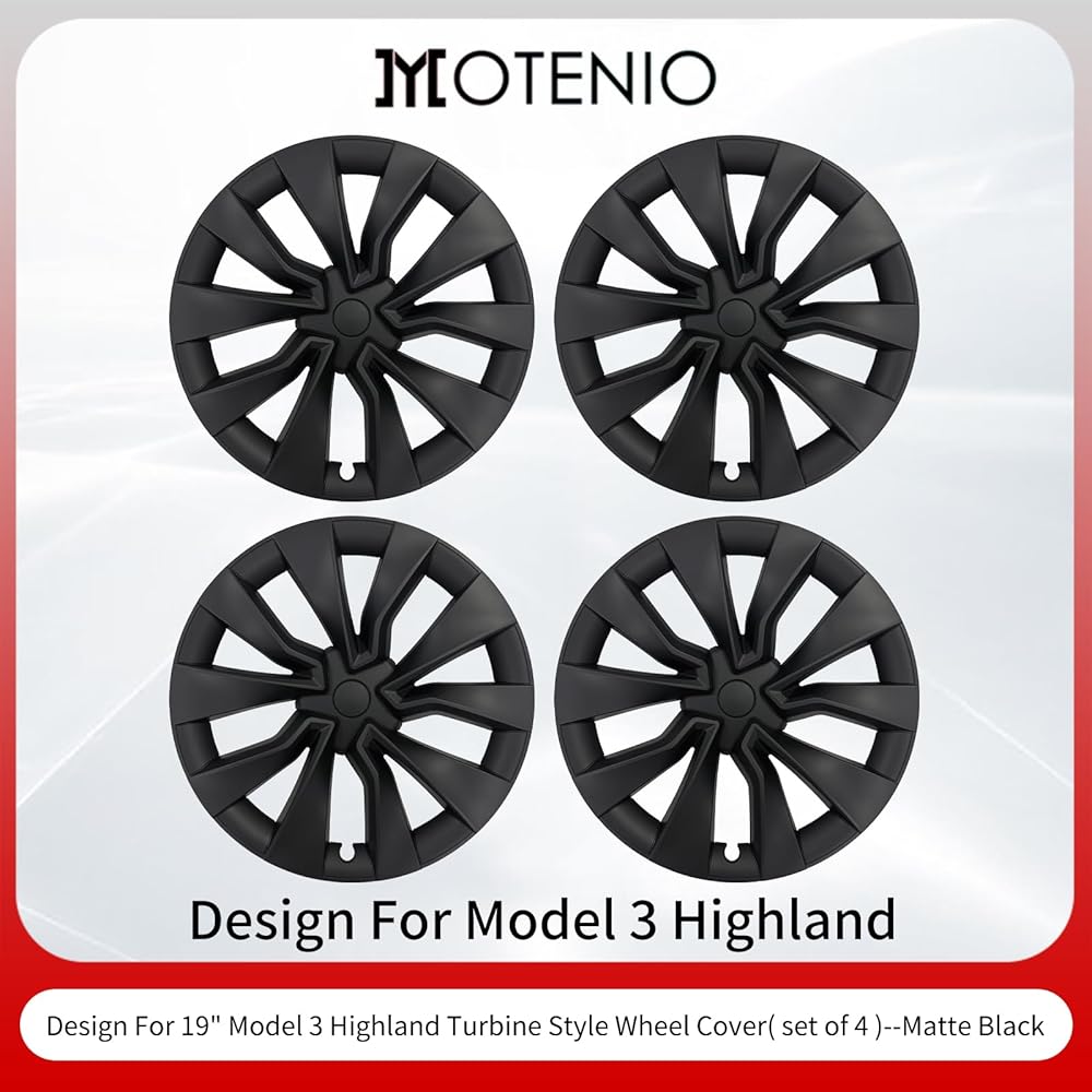 Make Your Model 3 Highland Stand Out : 19 inch wheel cover feature turbine design with matte black finish, which adds a modern and stylish touch, while also offering a simple and easy way to modify the look of your Model 3 Highland.