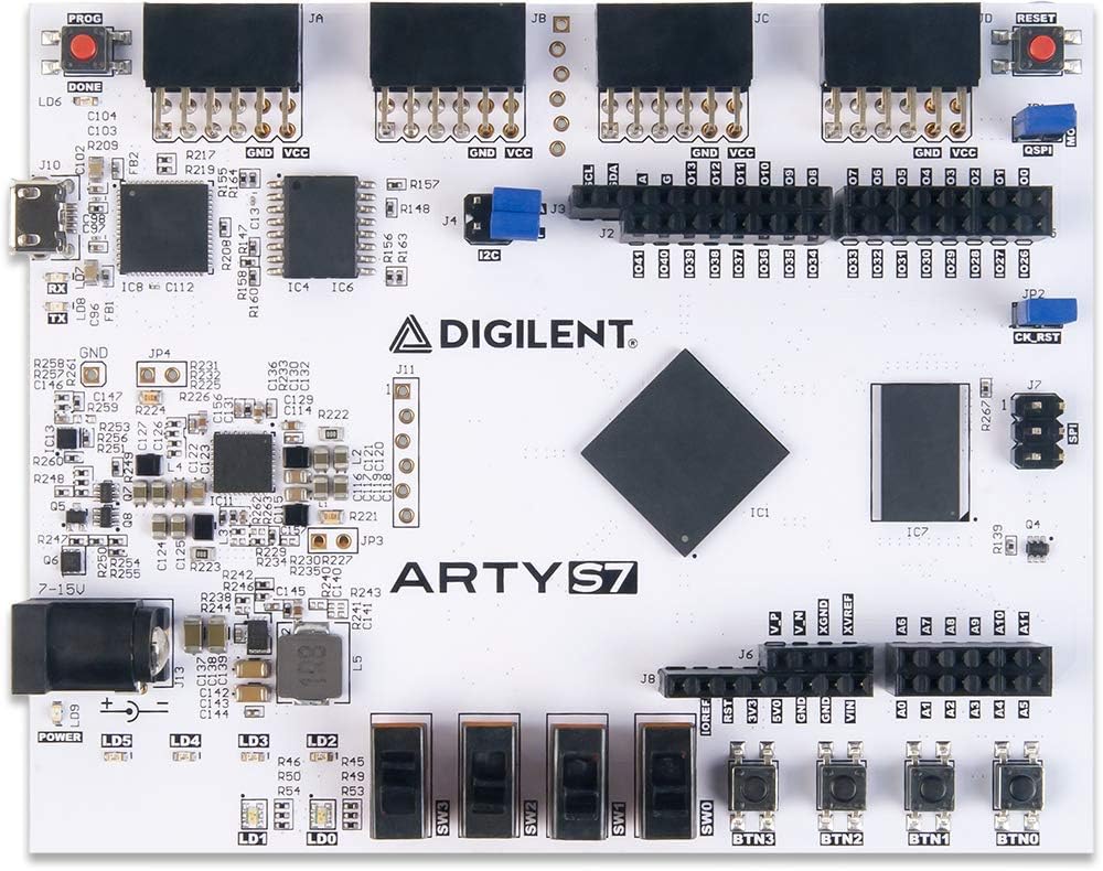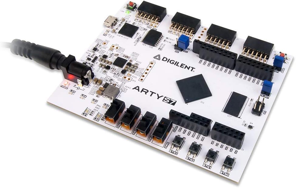 The Arty S7 board features the Xilinx Spartan-7 FPGA and is a of the Arty family for makers and hobbyists. The Spartan-7 FPGA offers the size and performance driven as well as cost-conscious designs using Xilinx latest technologies and is fully compatible with the Vivado Design Suite. Using this FPGA in the Arty form factor offers users a variety of I/O and expansion options. Use the dual row Arduino connectors to install one of hundreds of hardware-compatible shields, or use the Pmod ports with Digilent Pmod IP blocks for an optimised design experience.