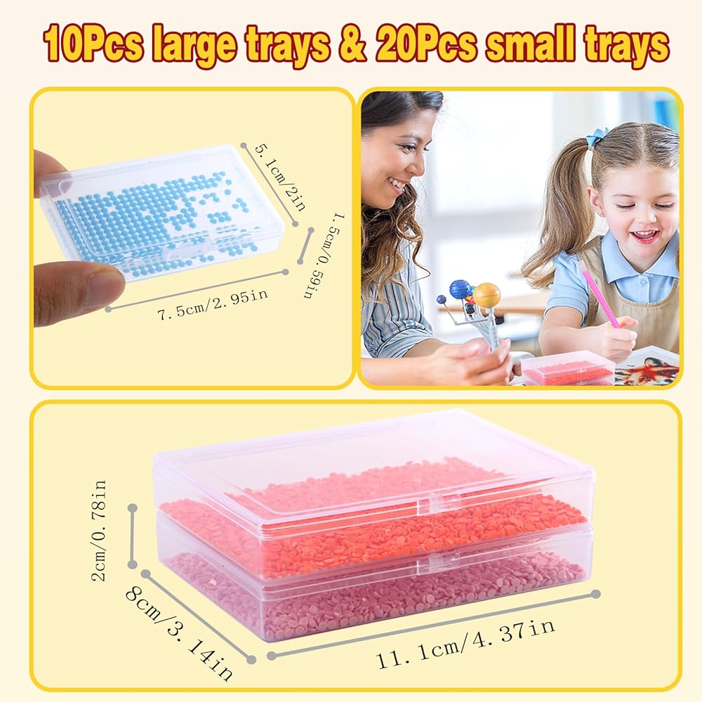 10Pcs Large and 20Pcs Small Trays with Lids Diamond Painting Storage Containers Trays, Diamond Painting Accessories, Box Package, Convex Point Bottom Design for Efficient Crafting