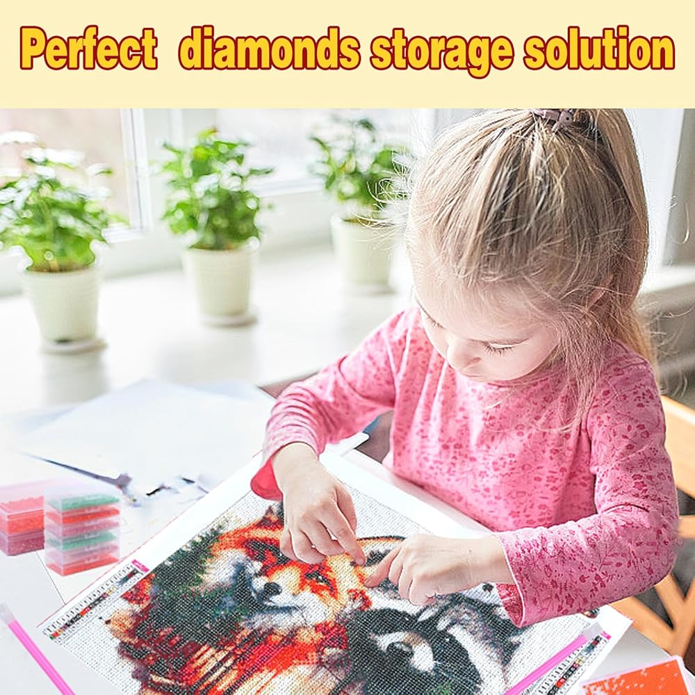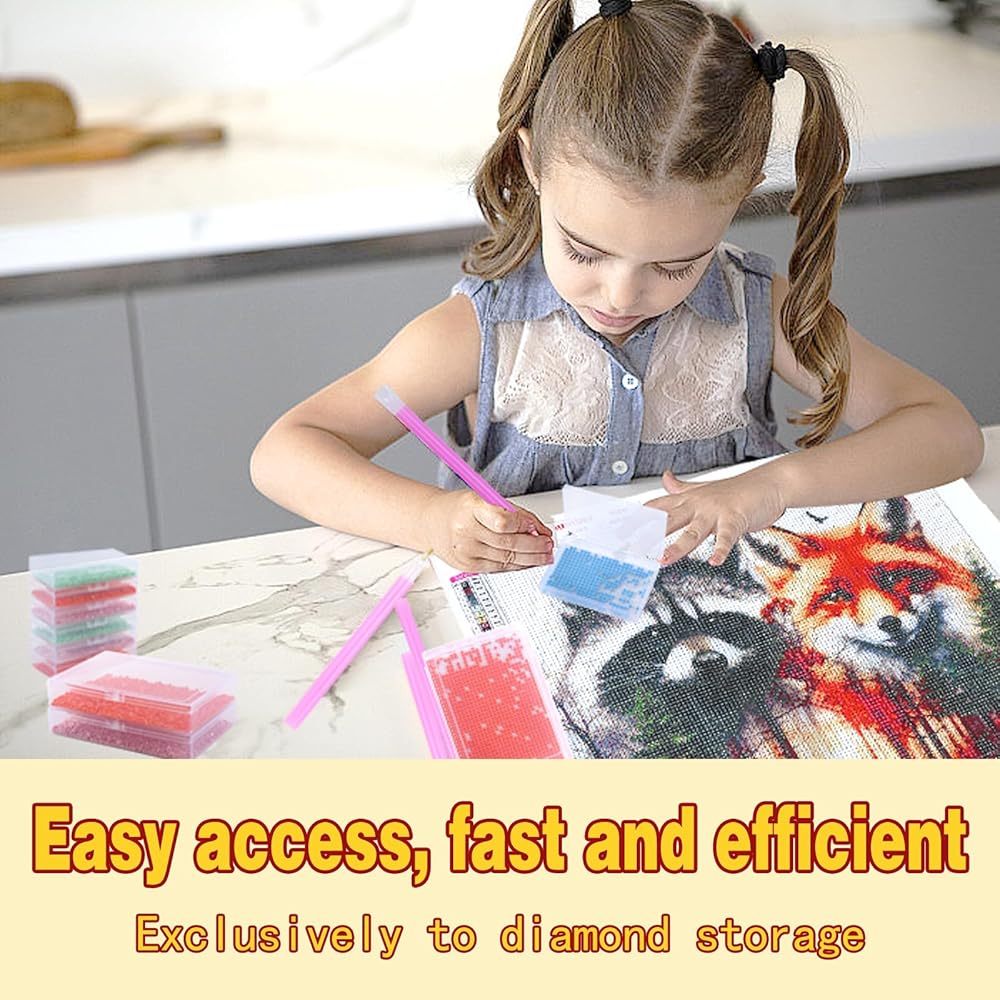 Multifunctional Diamonds Storage Rack: Diamond Art Accessories Storage Shelf can be saved on the desk to more convenient. This diamond art organizer is part of a comprehensive diamond painting kits. Diamond painting storage containers will help you manage and store diamonds easily. Packaging includes: 12 Pcs Small Trays with Lids