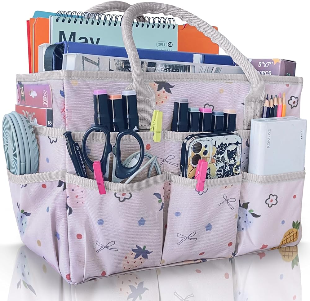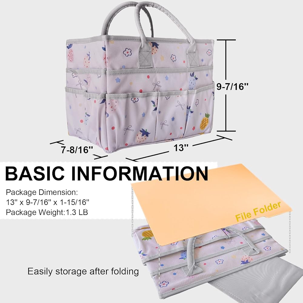Sufficient Size: Our tool tote is fully upgraded in size that holds about 3.3 gallons of items(folders, A4 paper, etc.) and outside pockets for your little pencils, pens, scissors, eraser, and more