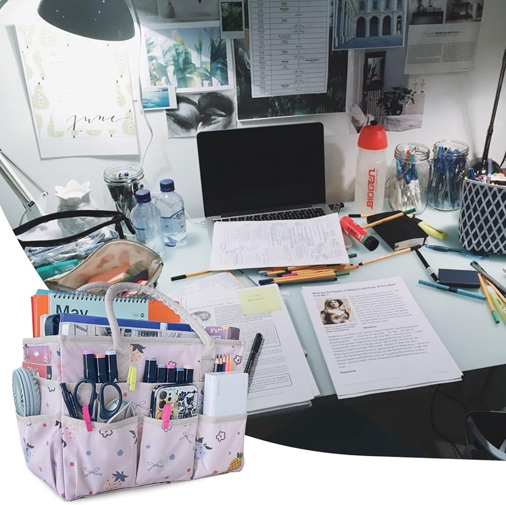 All in One: Keep your favorite office supplies together in our tote bag that with five side pockets, so you needn't run around due to forget