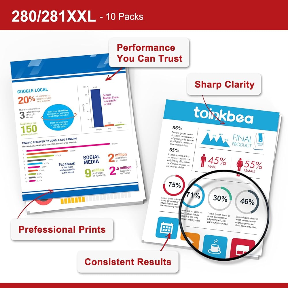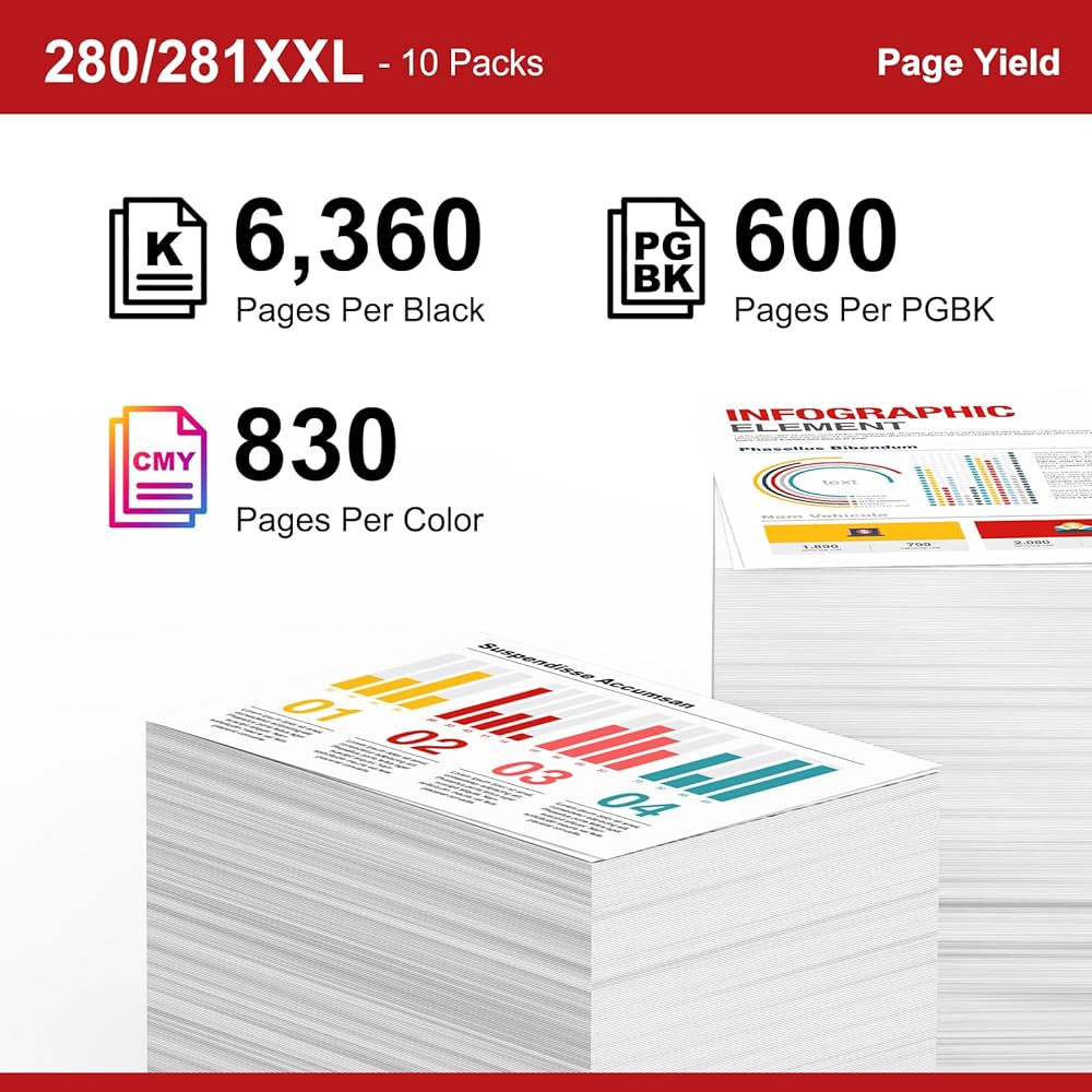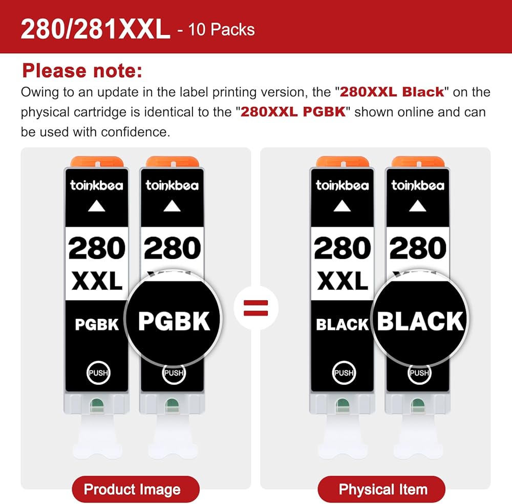 With Smart Chip: Each ink cartridge comes with a pre-installed smart chip for quick installation and instant printer recognition. Install and start printing without hassle. Toinkbea compatible TR8620a ink cartridges replacement for Canon PGI280XXL CLI281XXL PGI-280XXL CLI-281XXL PGI280 XXL CLI281 XXL