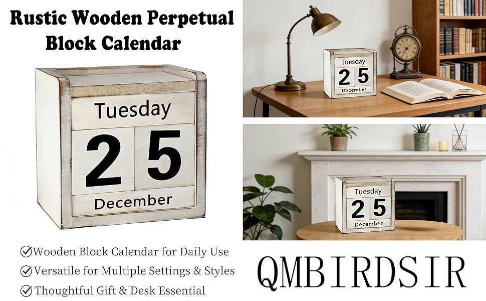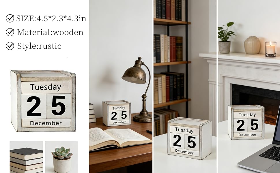 ✦ Upgraded Design with Clean Aesthetics - Our block calendar now includes a blank wooden cover to hide unused text, ensuring minimalist desktop decor. Its sleek look fits well with modern farmhouse decor, shelf decor, or bookshelf decor, adding subtle style to any setup.