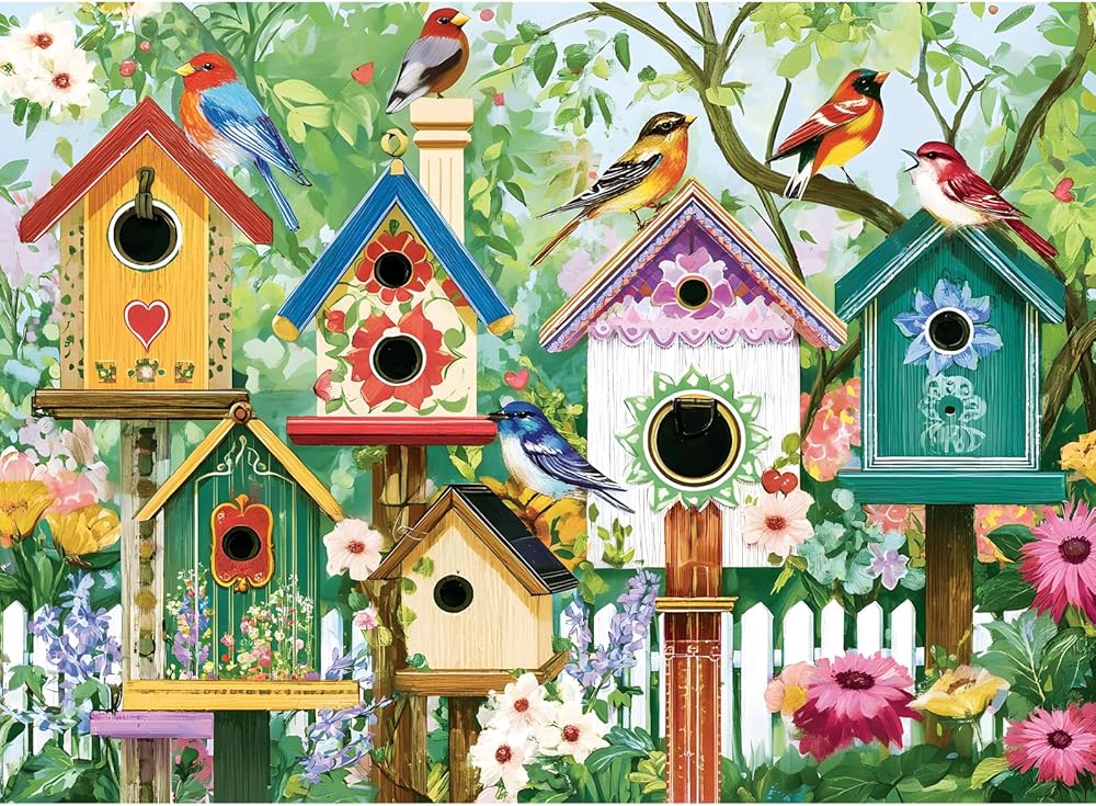 500 Piece Jigsaw Puzzle: This colorful birdhouses 500 piece puzzles for adults is both challenging and fun, the adult puzzle includes a full-color poster for your reference while completing the puzzle, the finished size is 20.5" x 15"