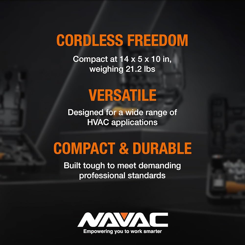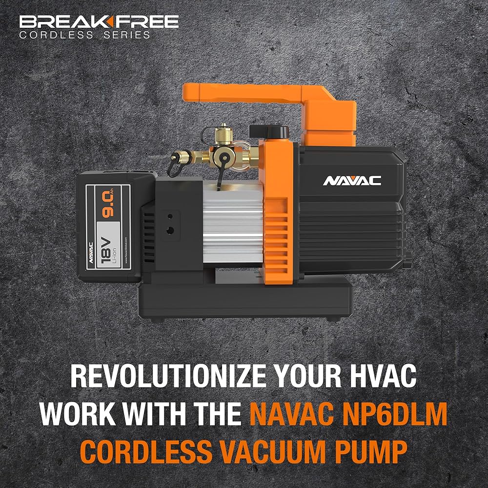 The NP4DLM BreakFree® Cordless Vacuum Pump features a high-performance lithium battery capable of up to one hour of continuous running time. At a scant 15.4 pounds, the unit is exceedingly efficient and, for technicians, easy to carry and store. The NP4DLM's dual-stage operation provides high vacuum down to 15 microns. A check valve prevents backflow. Other highlights include an isolation valve as well as a lifting hook and gas ballast for better moisture handling. Its inlet port fits flares of ¼-, 3/8-, and ½-inch.