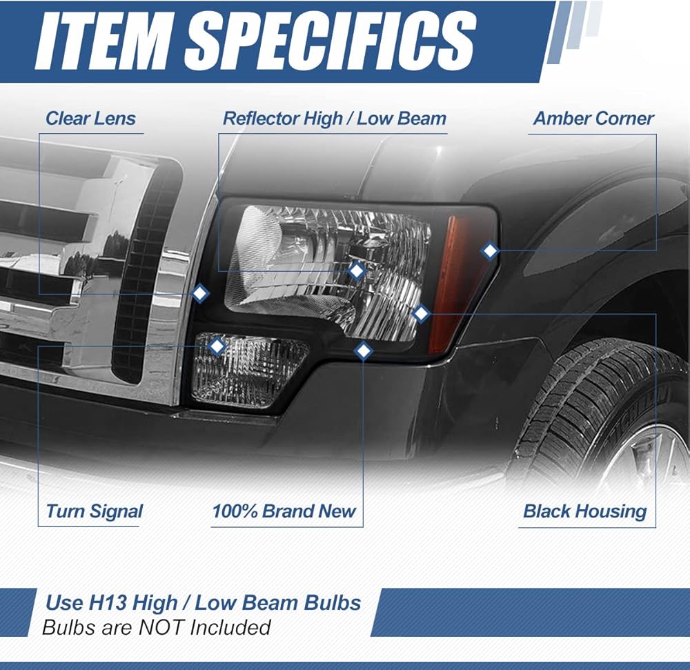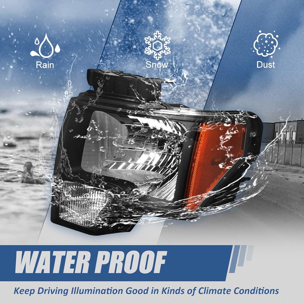 Vehicle Compatibility - Headlights assembly compatible with Ford F-150 2009 2010 2011 2012 2013 2014. Fits Halogen Model Only, Does NOT fit Xenon or HID Model.