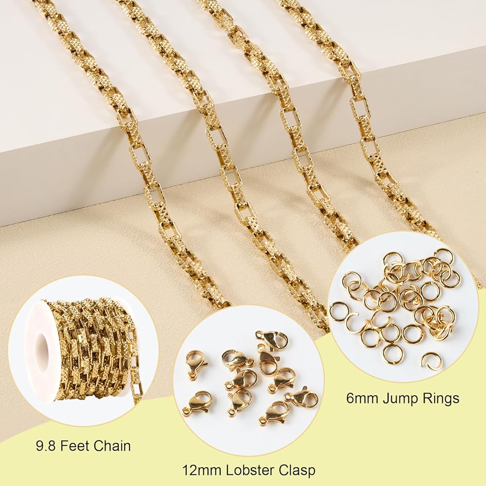 Jewelry Set: The package includes a roll of 3 meters gold chain, 10 lobster clasps and 30 open jump rings. A sufficient quantity to meet all your needs for creating various jewelry.