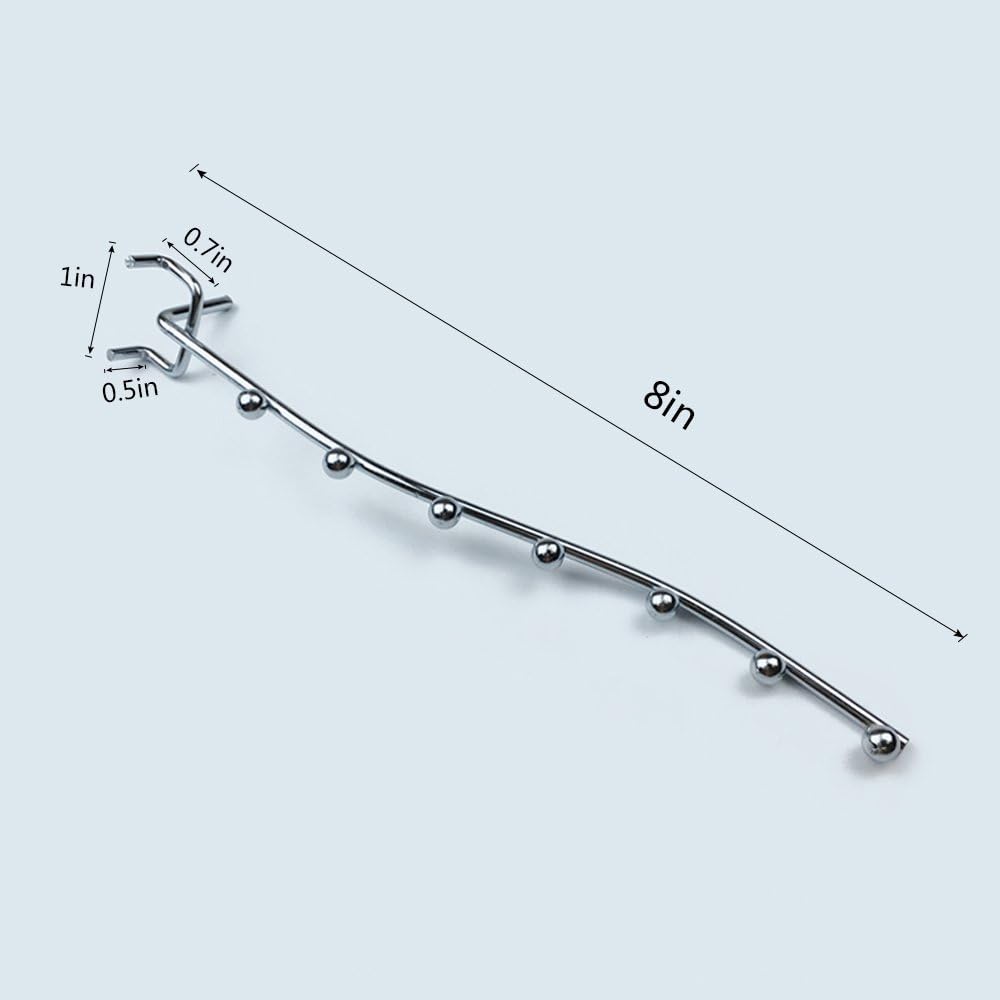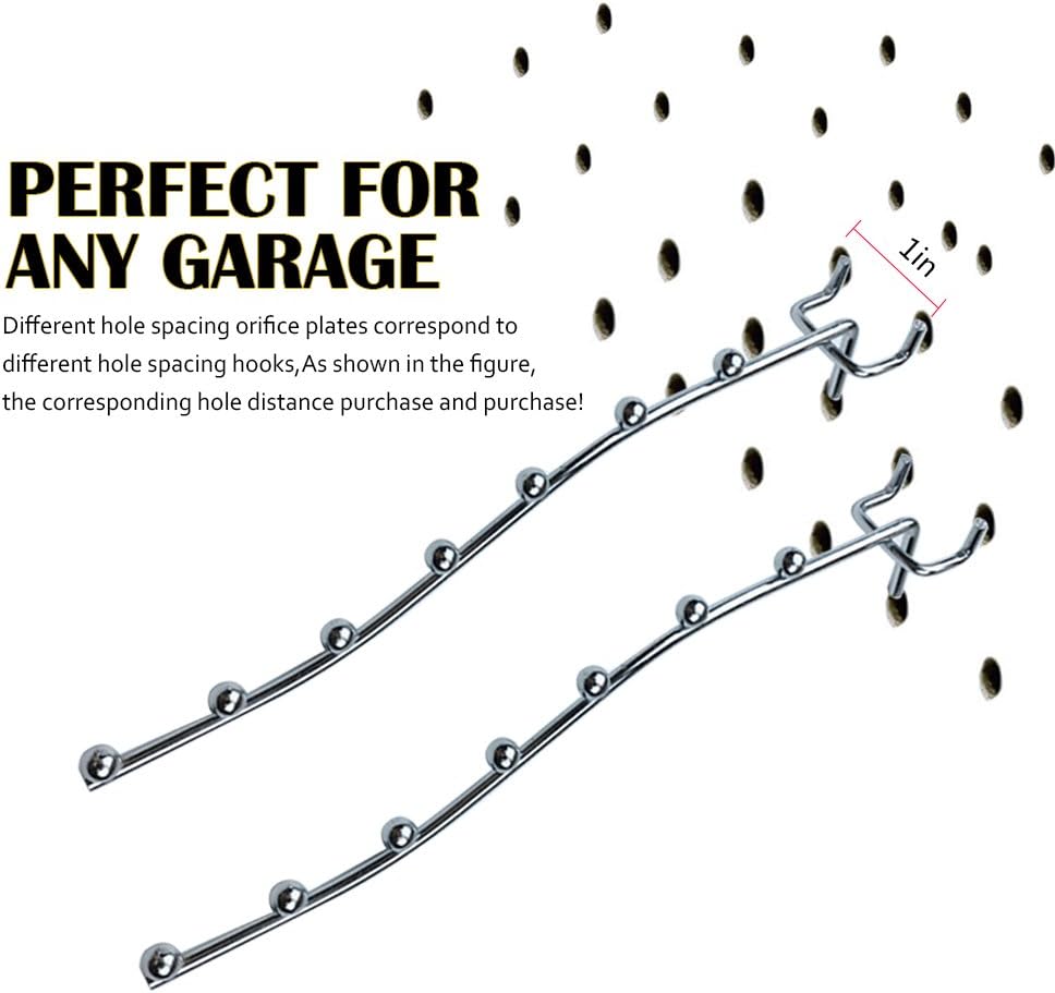 2、Peg board UNIVERSAL FIT:Waterfall hooks fit all types of 1/4” pegboards with 1” spacing.The wall cannot be more than 2mm thick. If the pegboard is too thick will lead to the wrong angle or can not be mounted.Please check your the thickness of pegboards before you order.1/4 pegboard long hooks