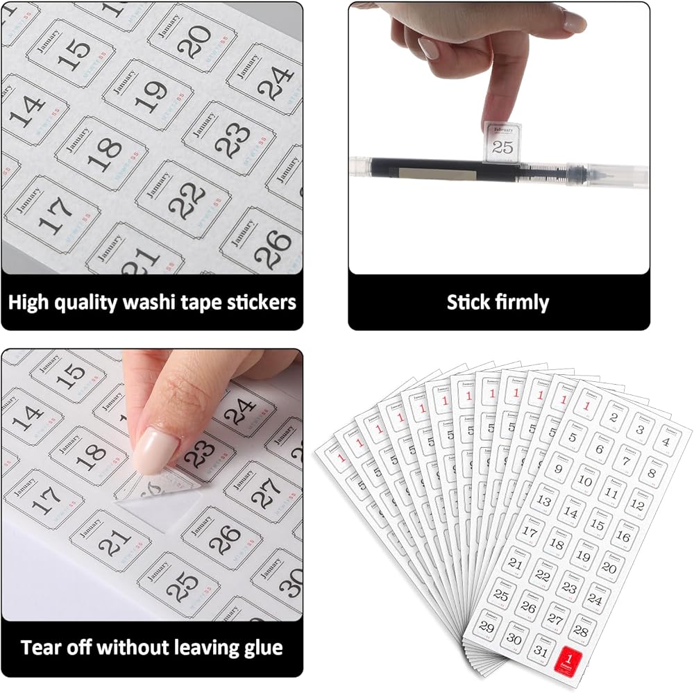 Versatile Applications: Calendar stickers can be attached to notebooks, handbooks, diaries, sticky notes, and other surfaces for scrapbooking. They can also be placed on monthly medicine boxes to remind family members to take medications on time.