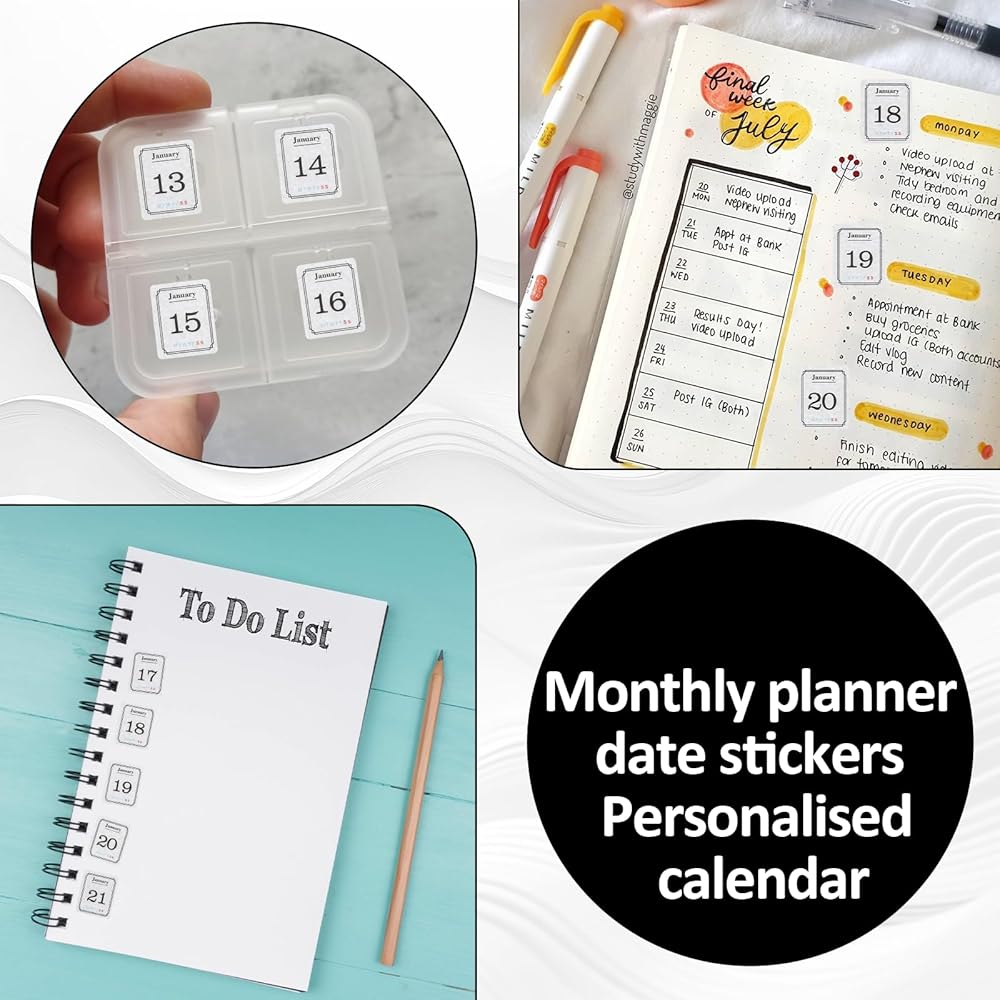 12 Date Stickers for Planners Monthly Calendar Number Sticker 365 Daily Planner Number Sticker Date Planner Stickers for Scrapbooking Customizing Undated Planners Notebooks