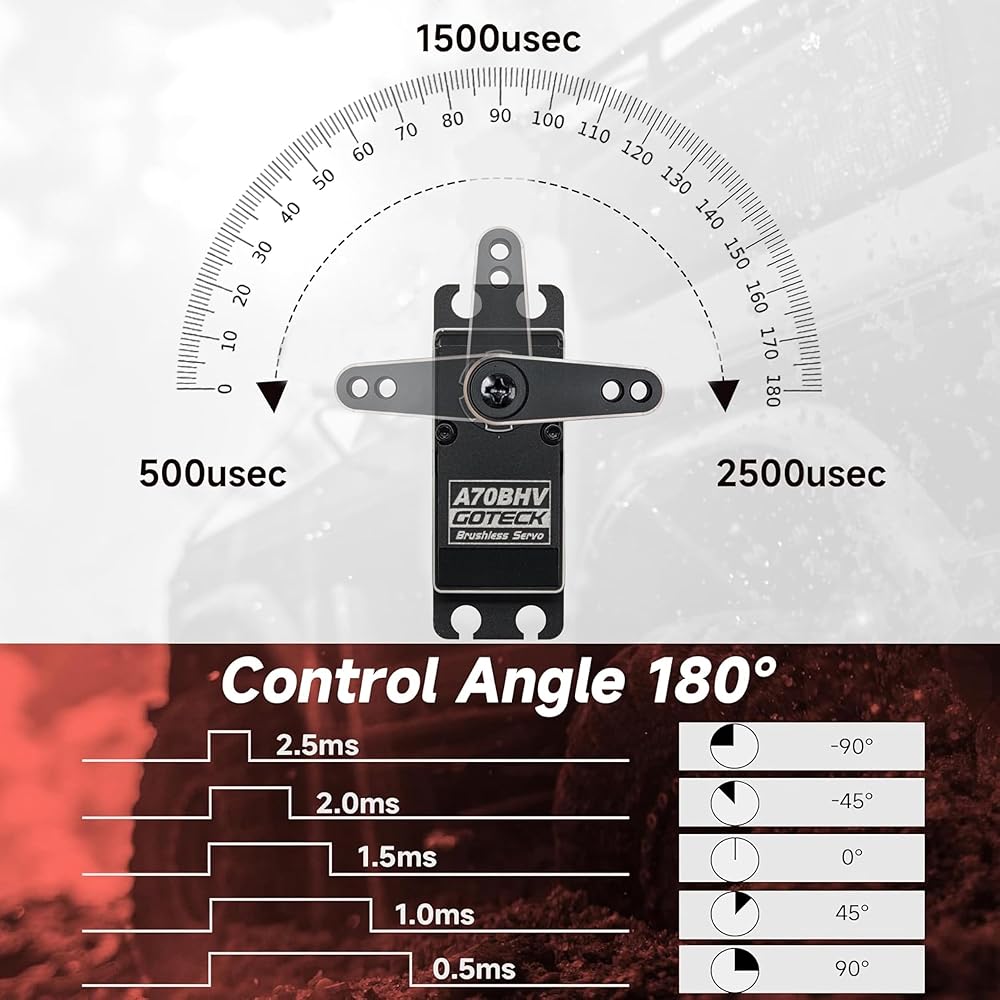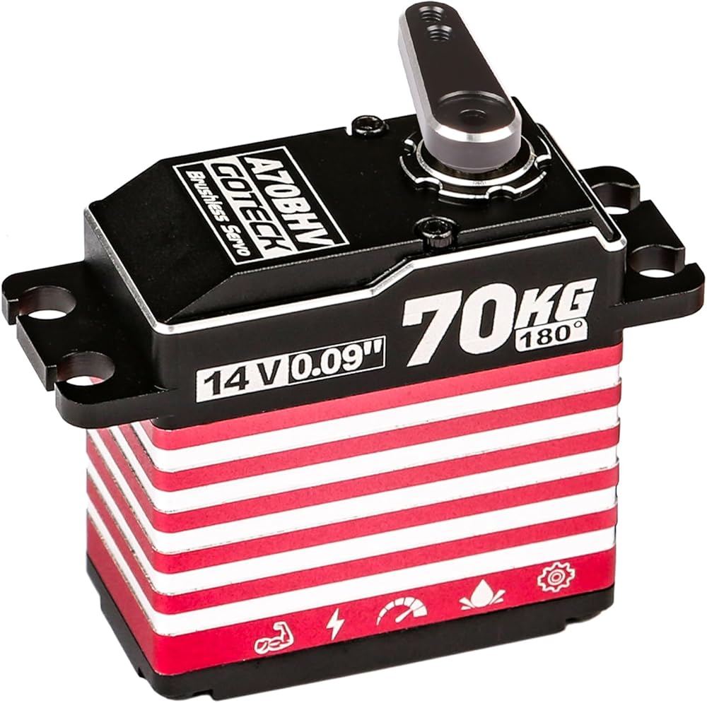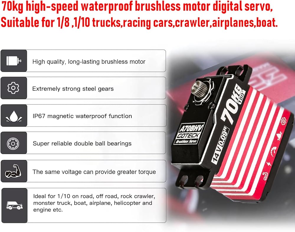 GOTECK 70KG Brushless Digital Servo,High Voltage 14V Full Metal Gear Waterproof Steering Servo with 25T Servo Horn for 1/8 1/10 Scale RC Cars,RC Crawler,Trucks,Boat,Robot Parts (A70BHV-180°)