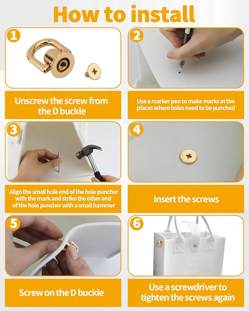 Great Value Purse Hardware Kit: You will receive 12 gold purse hardware and a punch tool. Our d ring has an excellent chromium coating, which is sturdy and reliable, not easy to fade, rust or wear, ensuring a long service life and can meet your different design needs