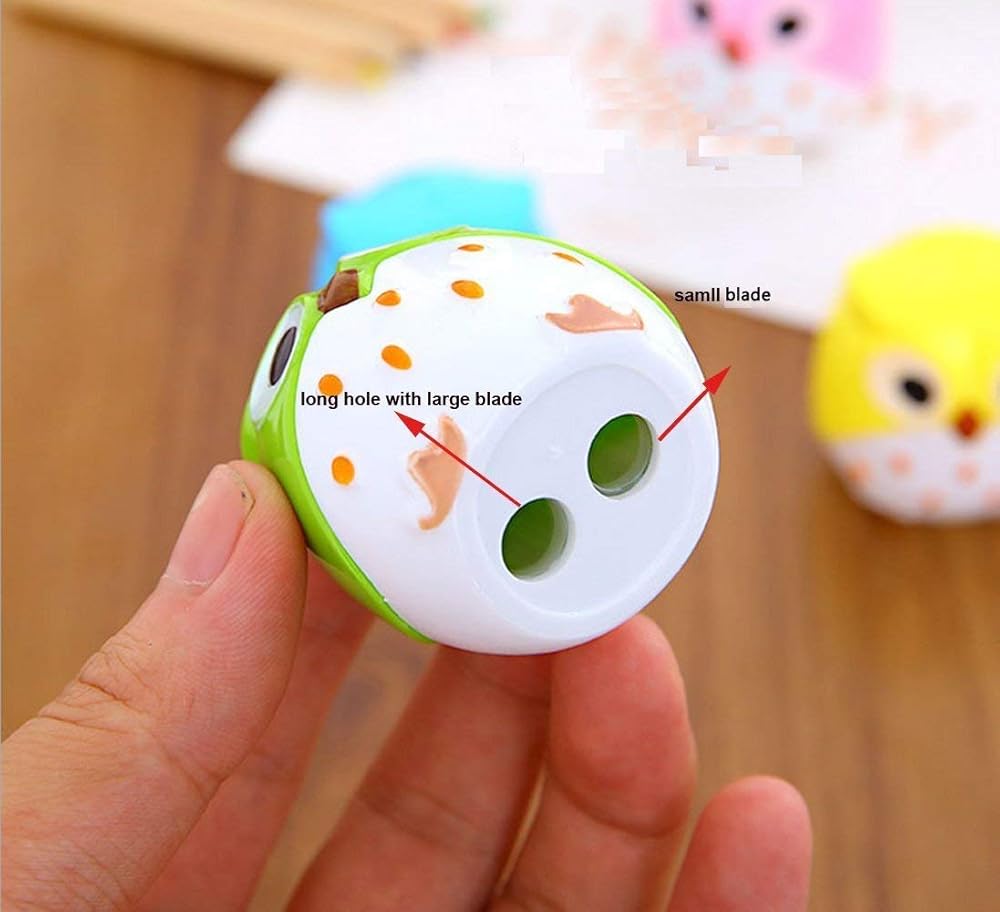 Cute cartoon animal owl pencil sharpeners with double sharpener holds. The right hole is small blade and left hole is long and big blade.