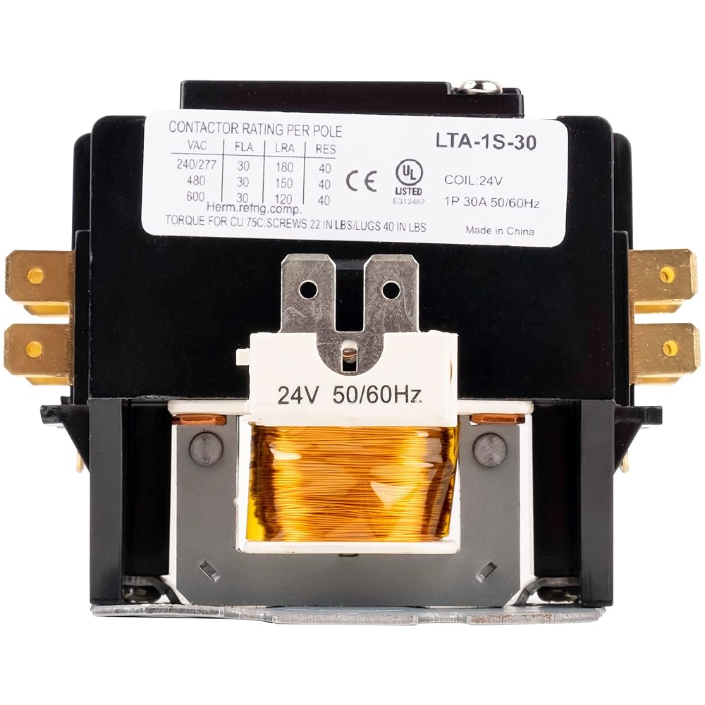 ✅ BlueStars AC Contactor for Air Conditioner Compressor Condenser. Single Pole/ 1 Pole; Coil Voltage: 24 VAC; Rated current: 30 FLA Amp; Compatible devices up to 600 VAC; Frequency: 50/60 Hz; Operating temperature: -25℃ - 70 ℃
