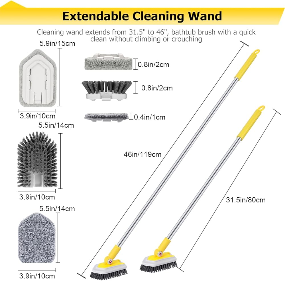 【46'' Adjustment Long Handle】Long handled scrub brush extends from 31.5'' to 46'' with a quick twist. Release your back, no more bending, stretching, kneeling or crouching to reaches from the floor of the tub to the ceiling height.