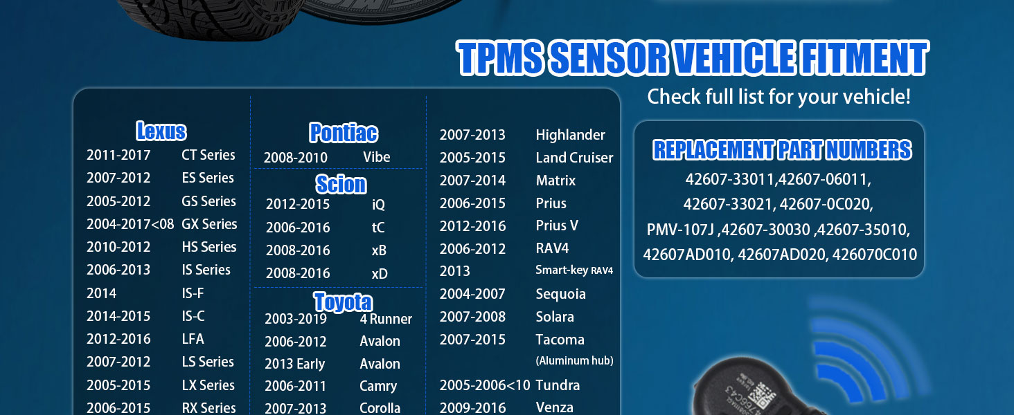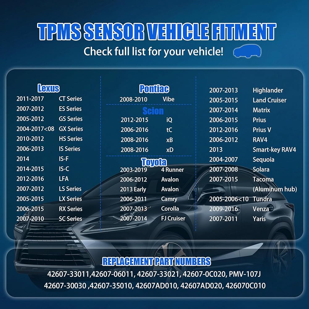 ✨【Precise Compatibility】Mtrcse pre programmed tpms sensor set of 4 fits Lexus, Toyota, Scion, and Pontiac. Please check description or fitment bar before purchasing.