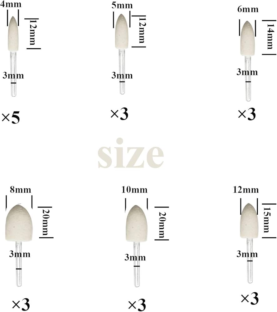 20Pieces bullet shaped grinding heads (diameter: 4 mm/ 5 mm/ 6 mm/ 8 mm/ 10 mm/ 12 mm)