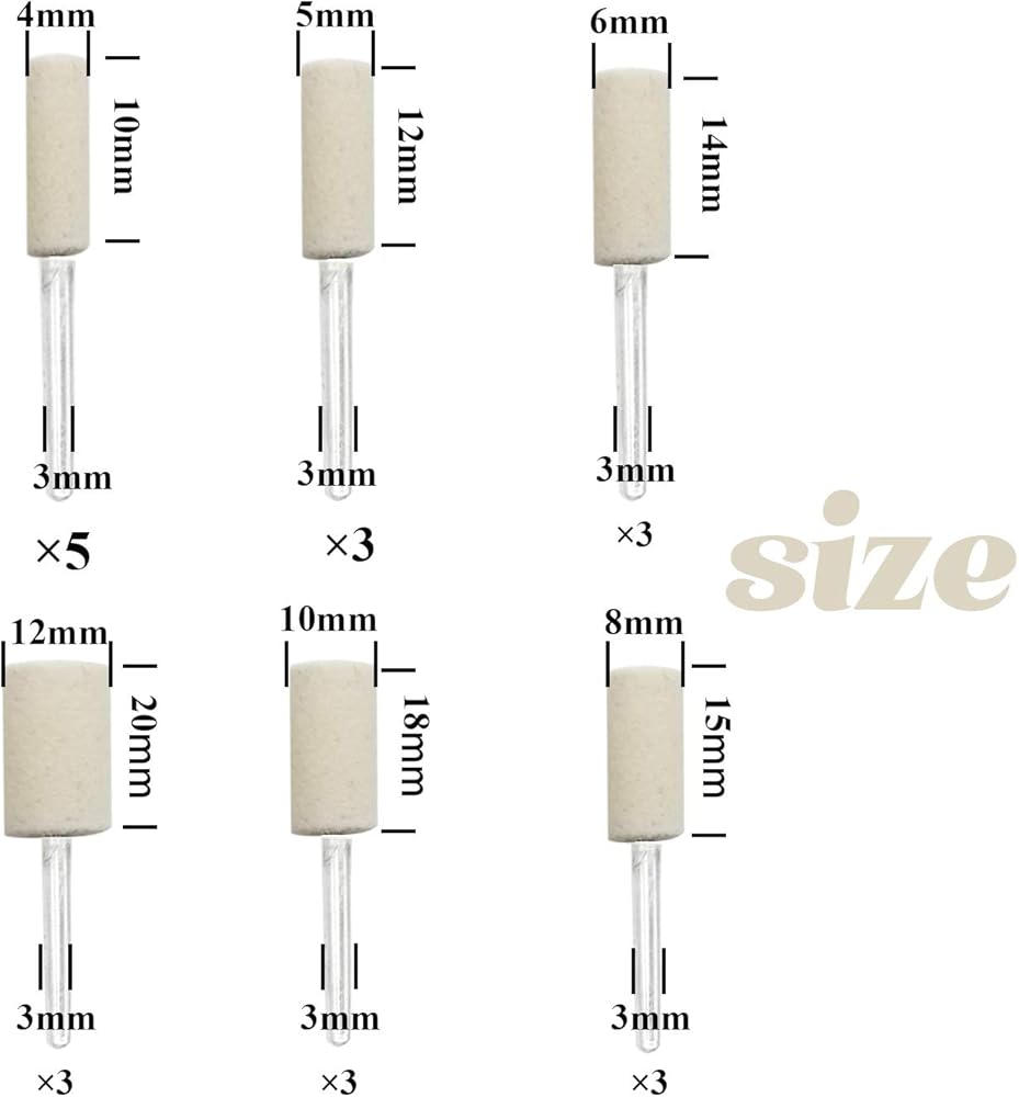20 Pieces cylinder shaped grinding heads (diameter: 4 mm/ 5 mm/ 6 mm/ 8 mm/ 10 mm/ 12 mm)
