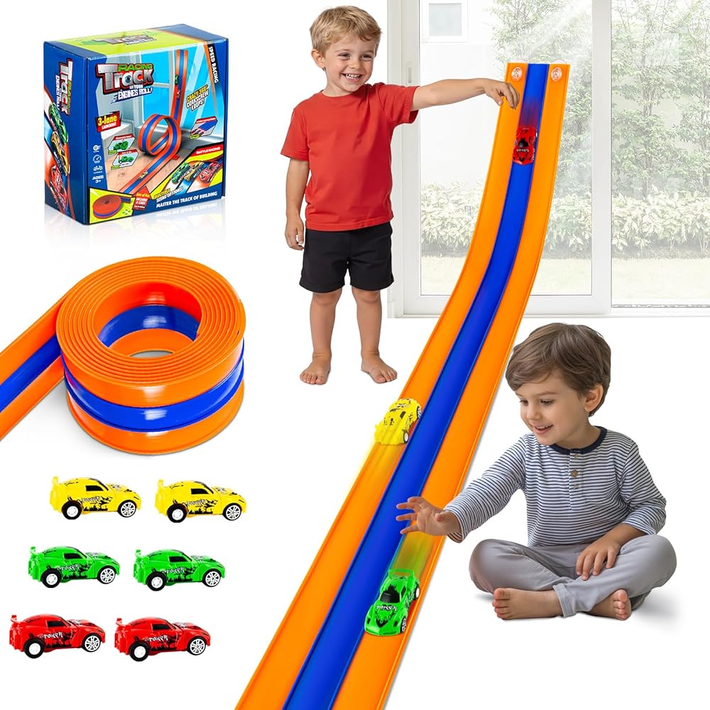 PROBLEM-SOLVING & RESILIENCE: Not a "watch and sit" toy! This flex race track offers a "build and test" experience. Kids experiment with angles to stick the landing, teaching that failure is part of the process—a valuable life skill disguised as play