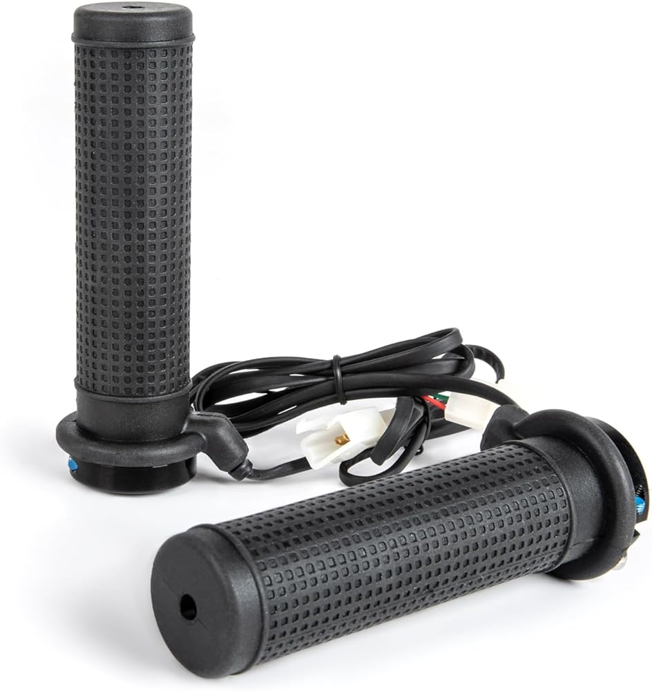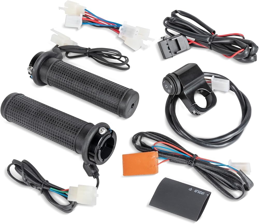 Heat levels: 2 levels Mounting type: Clamping ring Color: Black Thumb warmer included: Yes Fits on handlebar: 22 mm, 7/8" Fits on: Universal Voltage: 12 V Number: 000405GUARANTEED COMFORT AT THE CONTROLS! Extend your days of ATV riding with Kimpex heated grips. Enjoy two controllable heat levels, better ergonomics and a comfortable grip. The grips are simply installed with a clamping ring. No adhesive required. Mounting the switch to the handlebar is just as easy. Molded into the handle, the sloped wiring exit allows for proper orientation of the wires while protecting them. Grips are weather resistant. With Kimpex heated grips, you're guaranteed comfort at the controls!