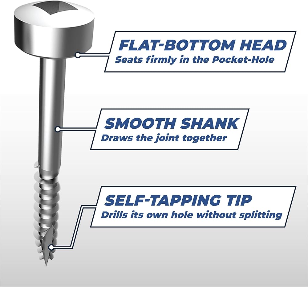 Heavy-Duty Pocket Screws: Kreg screws are case-hardened and won't strip; soft cores prevent snapping