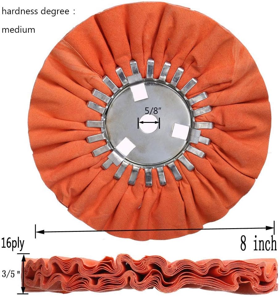 This Airway Buffing Wheel kit (2 pcs White & 1 pcs Orange & 1 pcs yellow 1 buffing rake ) 8" inch Diameter 5/8" in Arbor Hole 16 Ply for Angle Grinder
