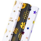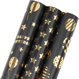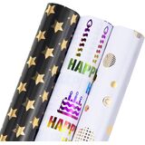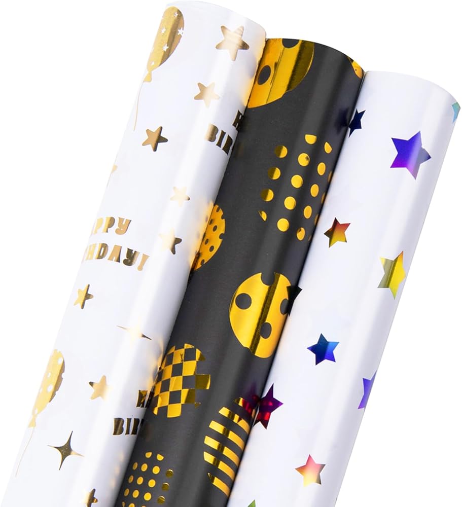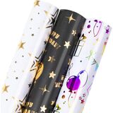 Linnoptimix Birthday Wrapping Paper Rolls -3 LARGE ROLL-27inch*78 inch per roll Colorful Foil wrapping paper (Birthday 1 White/Gold&1 Black/Gold &1White/Colorful Foil(012))