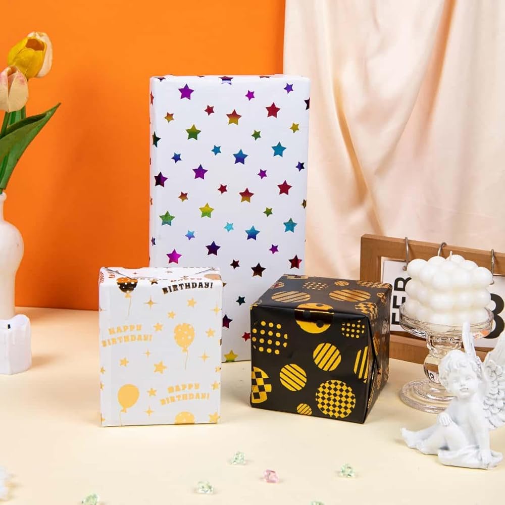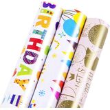 【3-Roll Gift Wrapping Paper Set】:Each roll measures 27 inches wide (≈70 cm) × 78 inches long (≈200 cm), featuring 3 harmonized birthday designs. Christmas edition also includes 3 coordinated festive patterns.