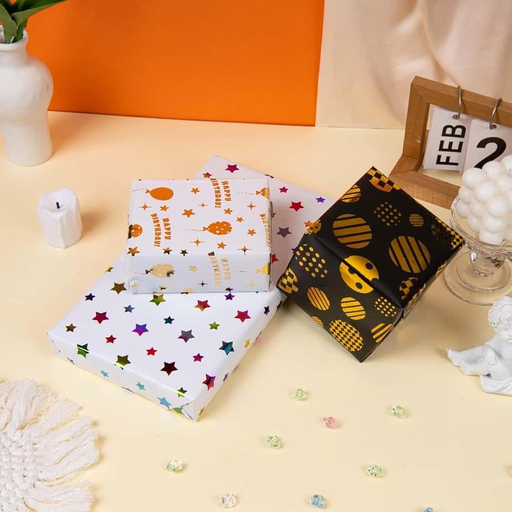 【Sophisticated workmanship and durable materials】: 80 GSM (grams per square meter) density with sturdy thickness—tear-resistant and durable for long-lasting use.Foil-stamped accents and mixed-design motifs elevate elegance.