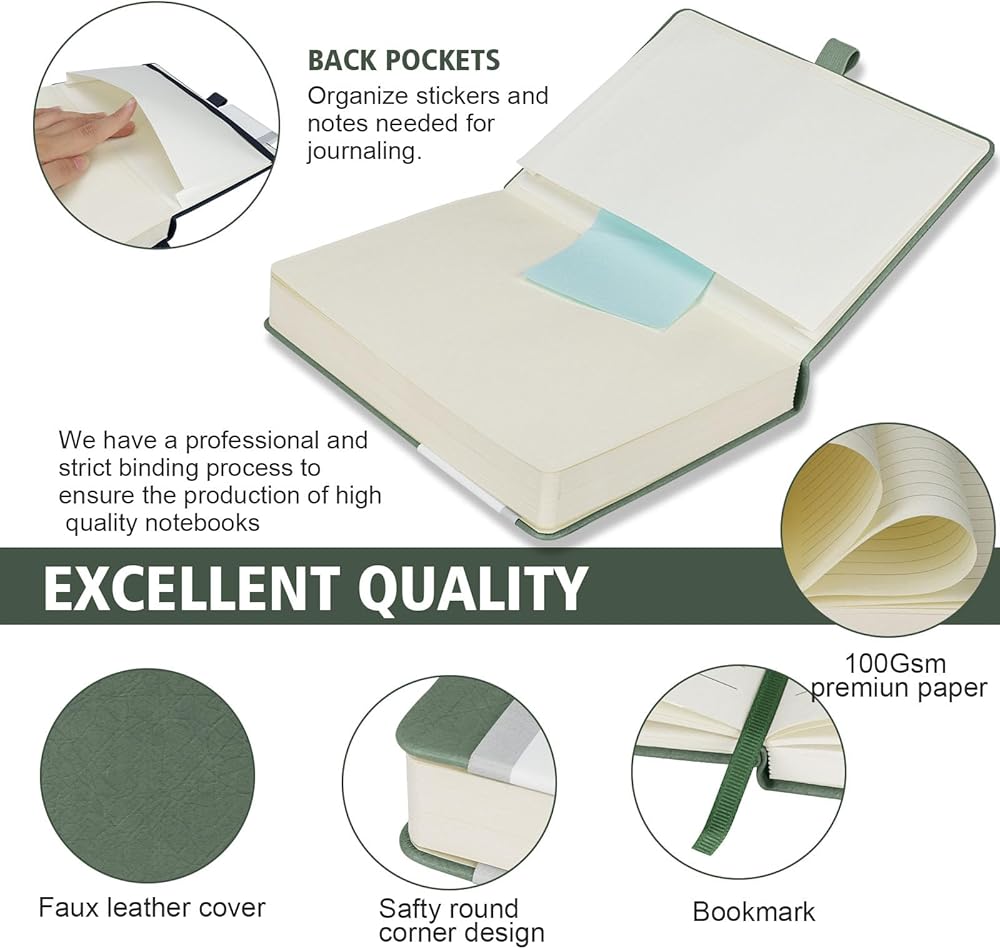 180 ° Flat Opening: easy to write, spine not easily broken, safe stitching and adhesive binding for a rust free writing experience, durable and durable