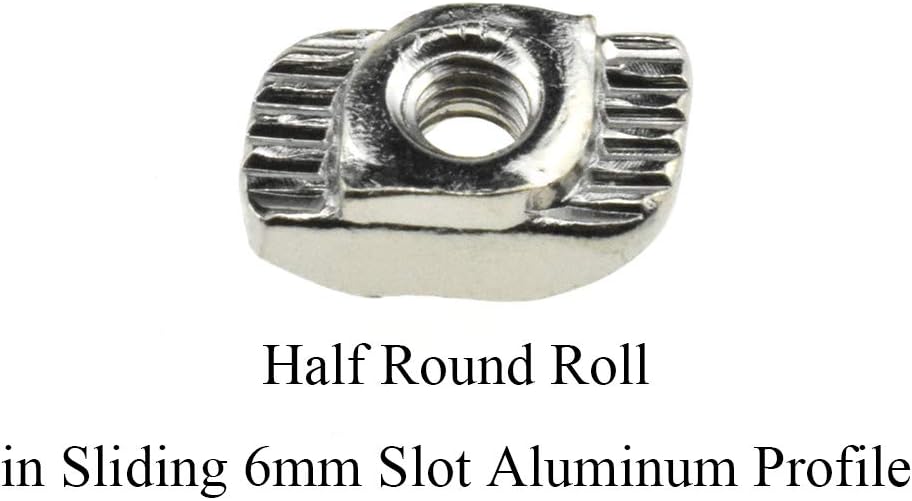 BINZZO Sliding T Slot Nuts 2020 Series M3 30 Pack Drop in T Nuts Carbon Steel Nickel Plated Half Round Roll in Sliding 6mm Slot Aluminum Profile Accessories for T Slot Aluminum Profile 20 x 20 Series