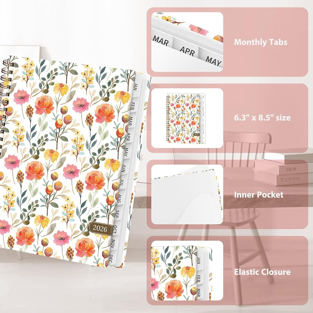 [Thoughtful Design] The 2026 planner weekly and monthly features an elastic closure, laminated tabs for quick navigation, and a sturdy double-sided pocket to safely store, ensuring a seamless and efficient planning experience.