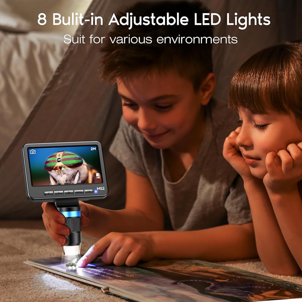 【10X-1200X Magnification】Leipan microscopio digital can adjust and magnify tiny object from 10X-1200X,you can clearly see the metal surface of error coins,the lines of plants' surface, the joints of insects, the surface of skin and each interface of PCB. It can bring an amazing micro world to you and your kids