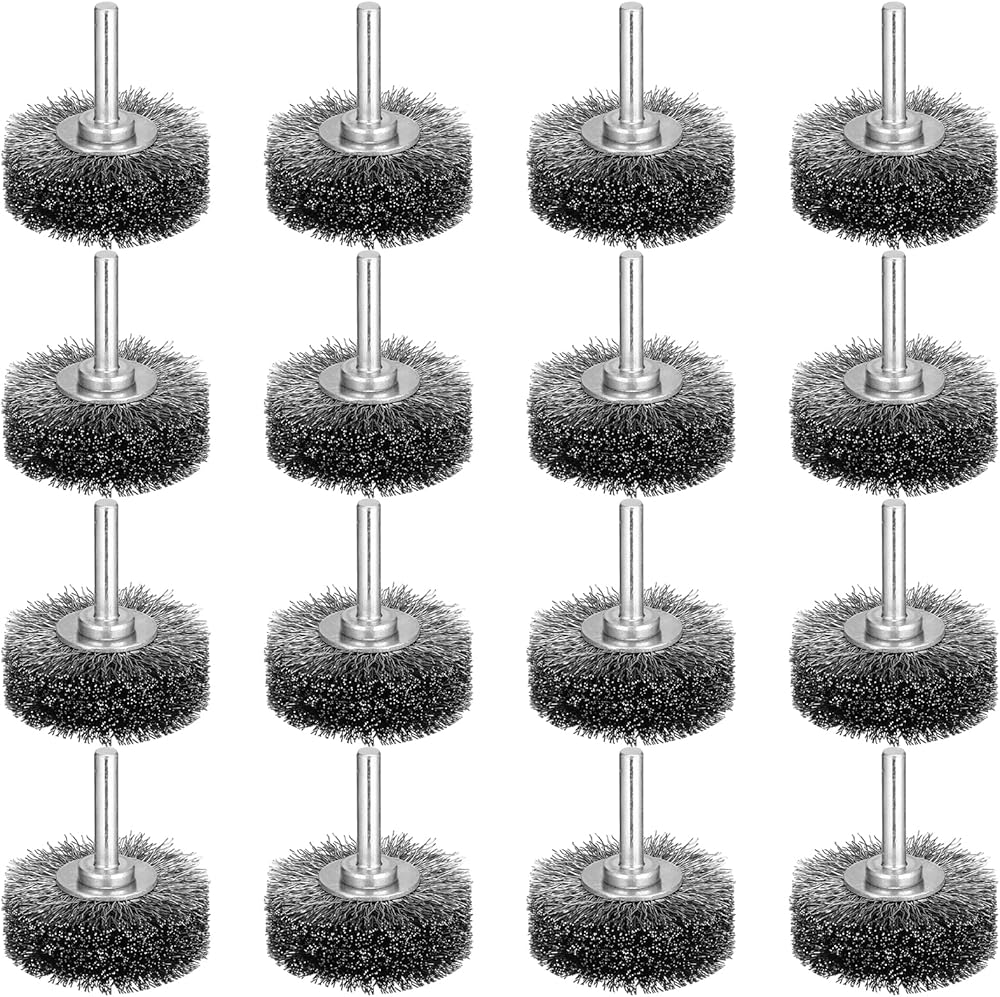 Size: 2 inch in diameter, 3/4 inch in face width, 0.0118 inch in carbon steel wire bristles, 1/4 inch in mounted stem