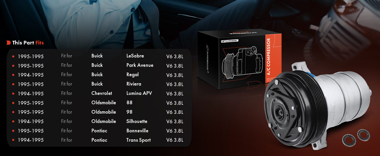 [Vehicle Fitment]: Compatible with Buick LeSabre/Park Avenue/Riviera 1995, Regal 1994-1995 3.8L; Compatible with Chevrolet Lumina APV 1994-1995 3.8L; Compatible with Oldsmobile 88/98 1995 3.8L, Silhouette 1994-1995; Compatible with Pontiac Bonneville 1995, Trans Sport 1994-1995 3.8L