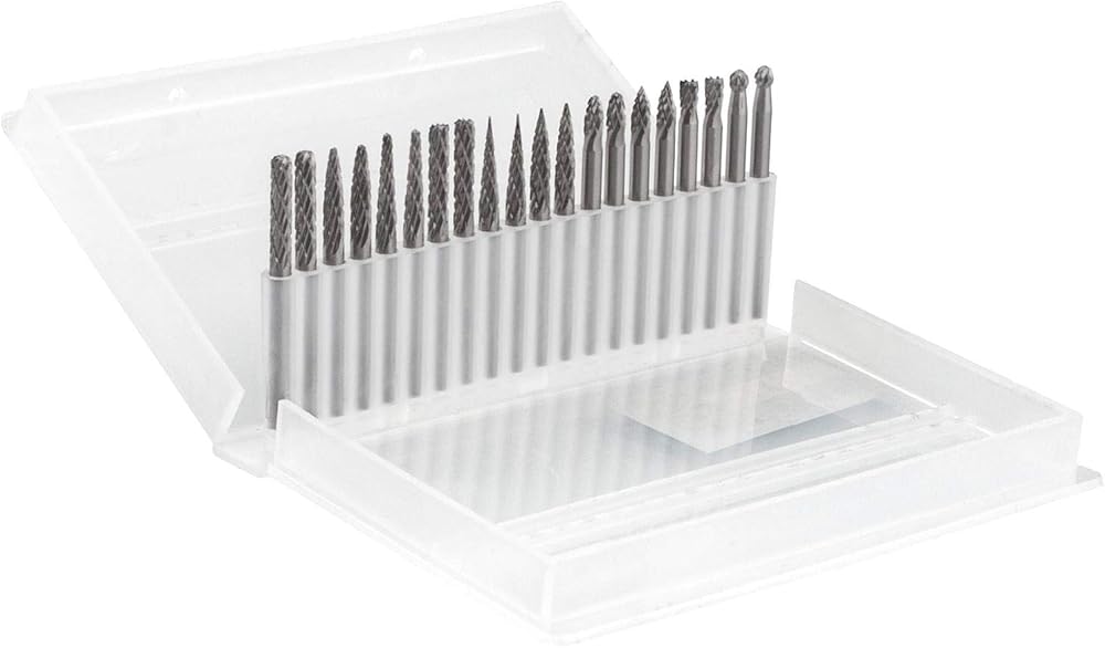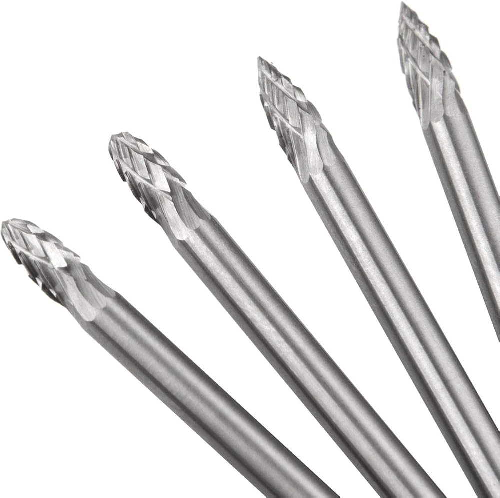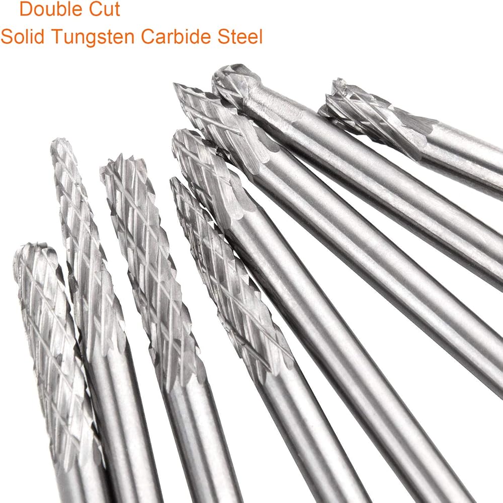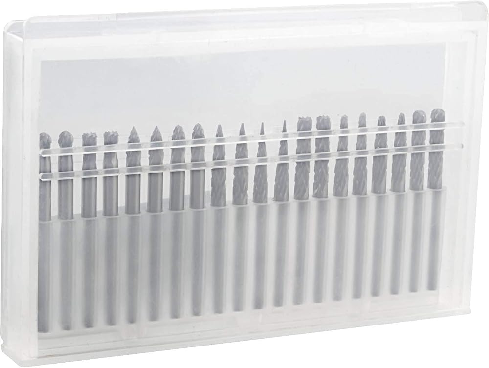 CBTONE 20pcs Carbide Bur Set, 1/8" Shank, Double Cut, Tungsten Carbide Rotary Files Burrs for Woodworking, Engraving, Drilling, Carving