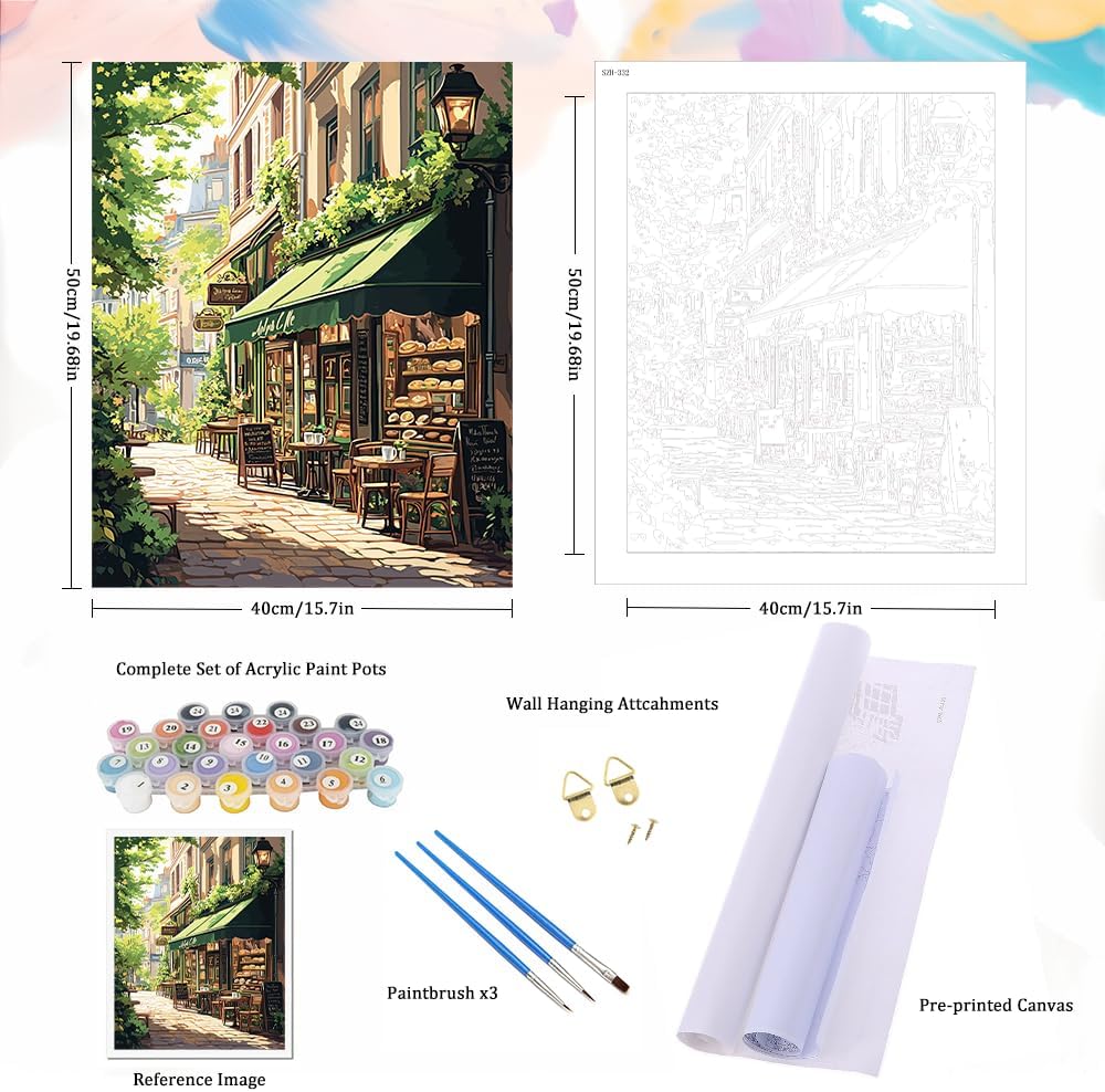 Natuyalo Cityscape Paint by Numbers Kit for Adults Beginner, Street Adult Paint by Number Kits on Canvas, DIY Painting with Numbers for Adults, Acrylic Simple Paint by Number Kits (16x20 Inch)