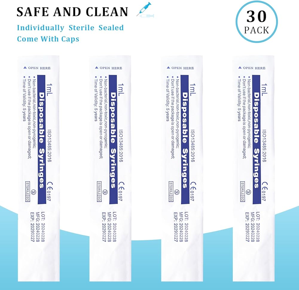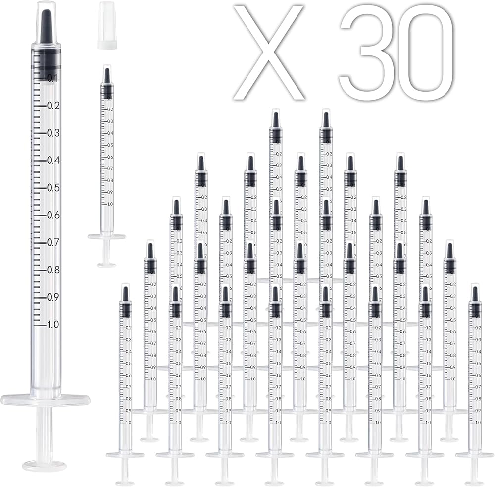 30 حزمة 1 مل من محقنة بلاستيكية مع غطاء ، معقم ومختومة بشكل فردي لقياس ، سقي ، إعادة ملء ، تغذية الحيوانات الأليفة ، المختبرات العلمية ، قضيب الزيت أو الغراء
