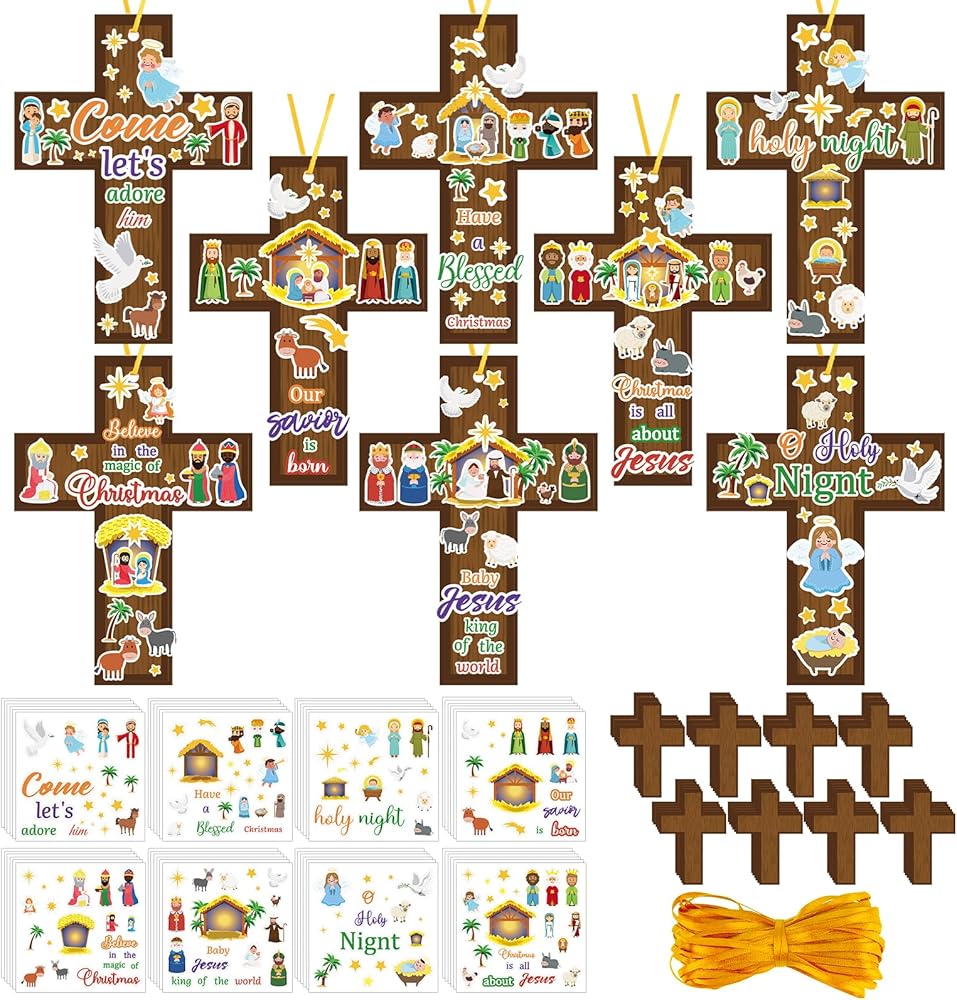 ZCPTZ 48 Set Christian Cross Sticker Craft Kits - DIY Christmas Religious Jesus Hanging Ornaments Paper Crafts for Holiday, Christian Sunday Gifts & Decorations