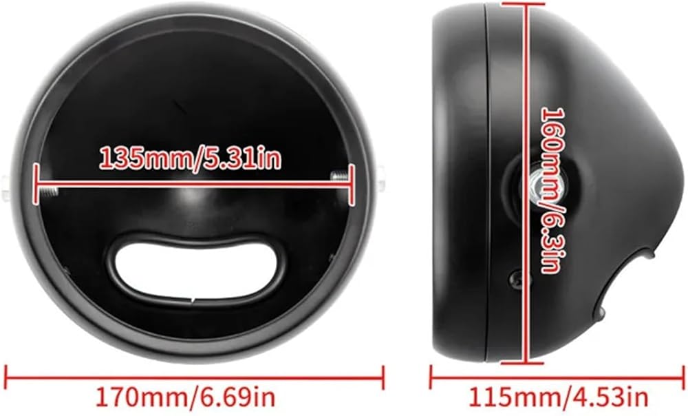 Bulbs 5.75 Inch Motorcycle Headlight Side Mount Round Headlight Housing Cover Headlamp Lighthouse Head Light Shell Fit For Harley Universal(Matte Black)