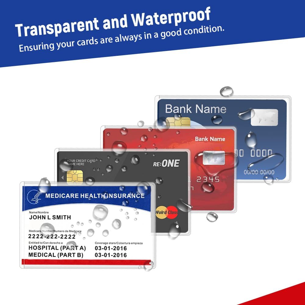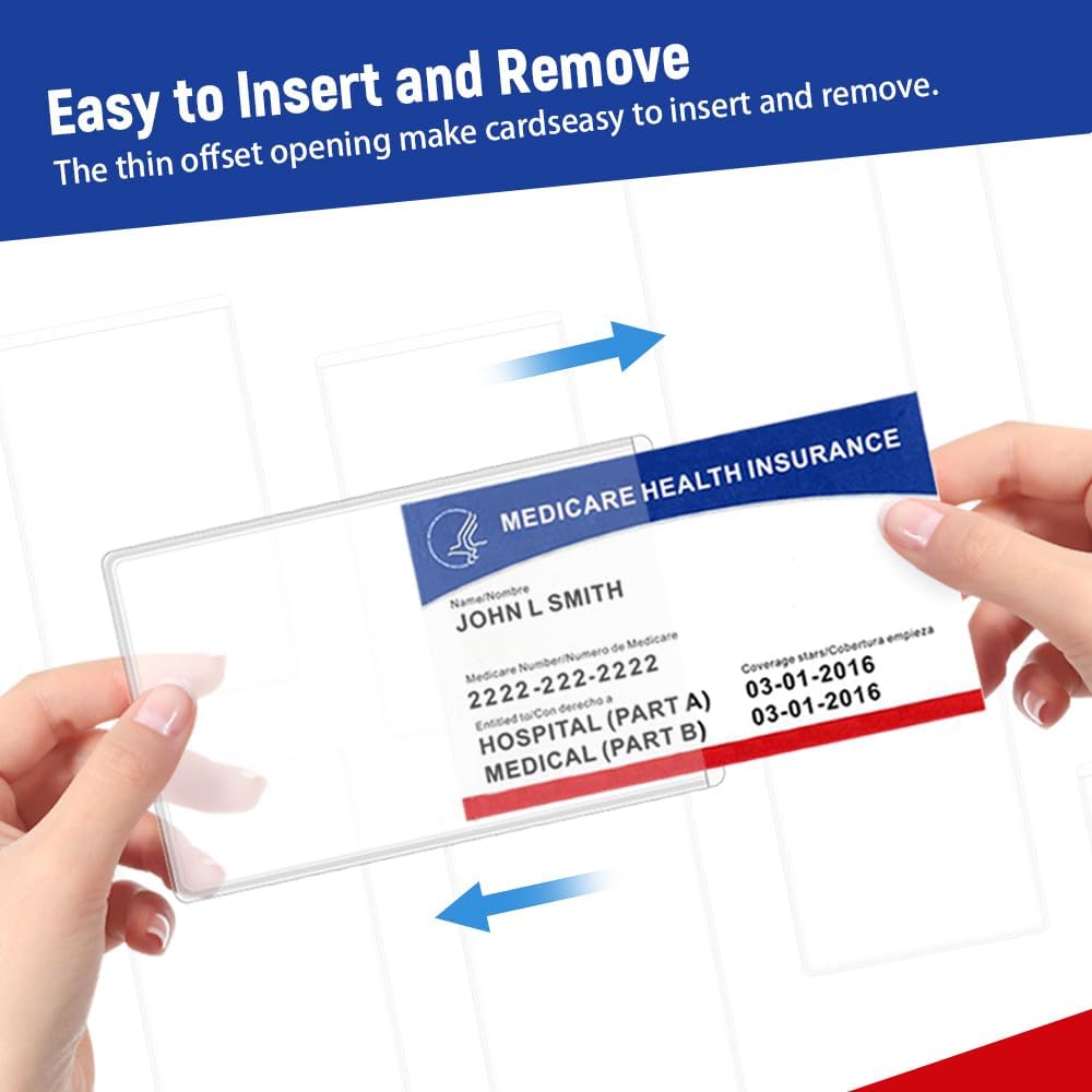 Universal Fit for All Cards: Measuring 3.66x2.36 inches, these clear card sleeves perfectly hold Medicare cards, Social Security cards, driver's licenses, ID cards, debit cards, and business cards without adding bulk to your wallet