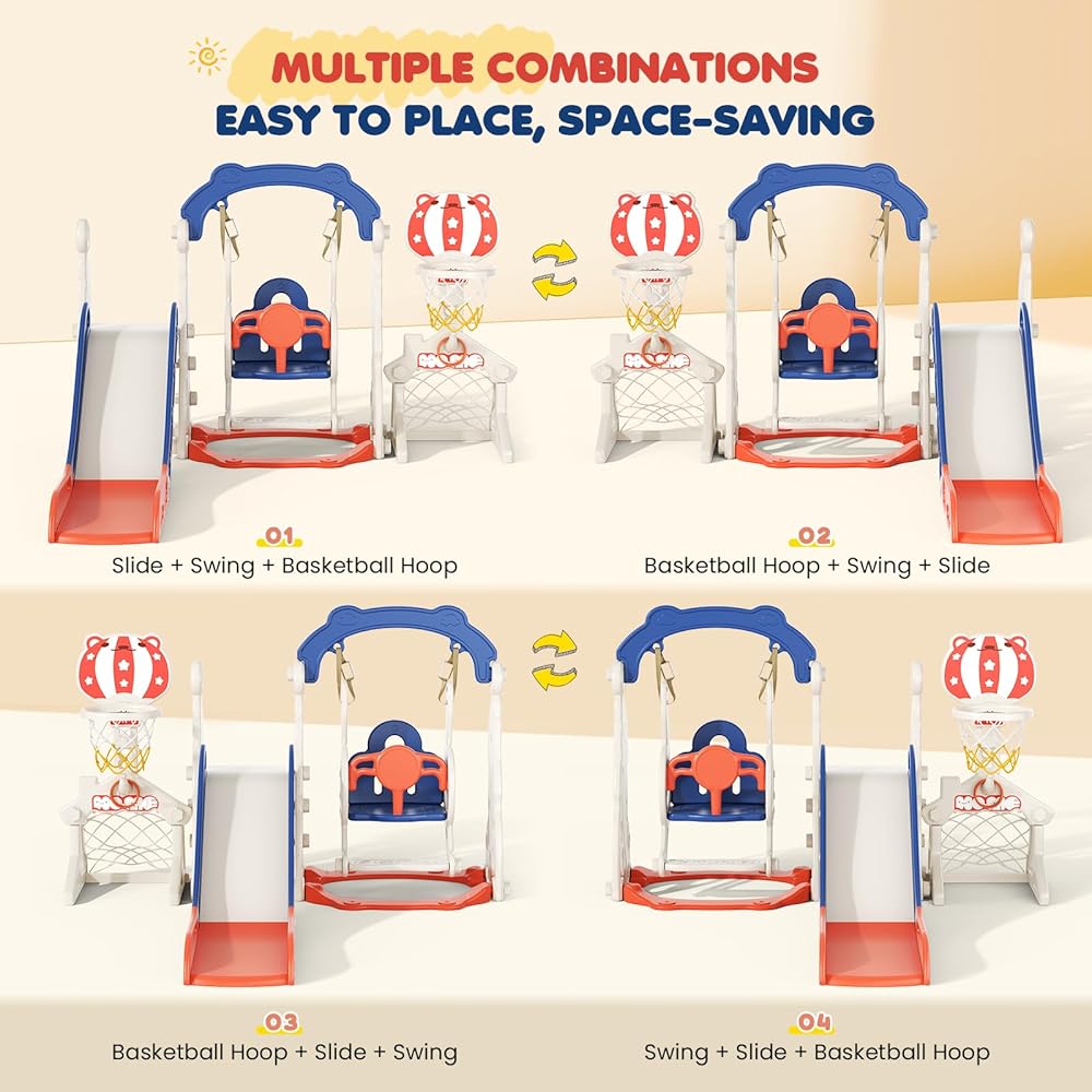 👣 "Safe & Adjustable Toddler Swing" - Our toddler slide set features a swing with two height settings, easily customized to suit your child's growth. The extra-wide T-shaped seat and footrest provide added stability, helping prevent slips and falls. For enhanced safety, the swing's base includes a weighted design—simply fill it with sand or water for a more secure and sturdy setup