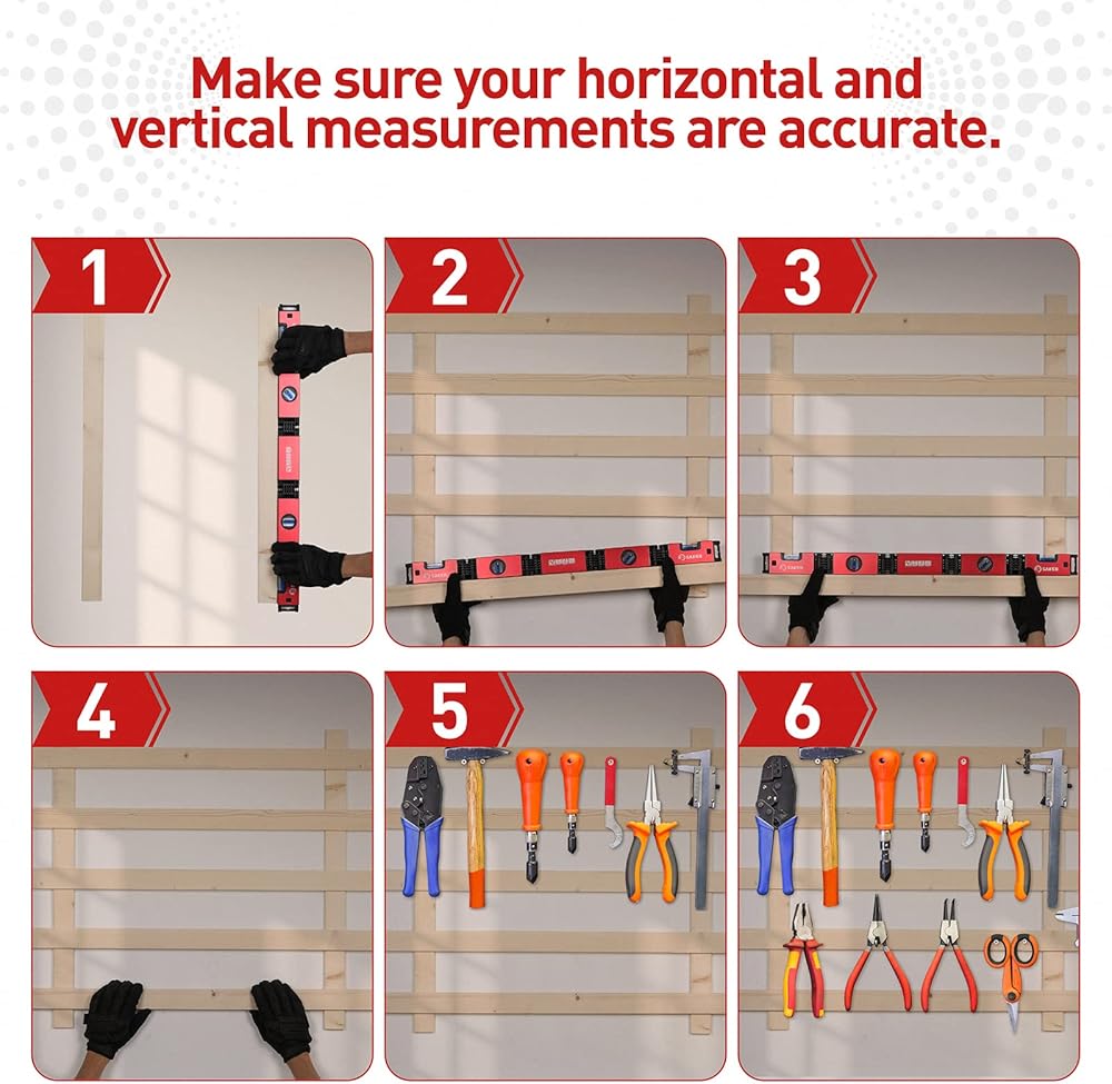 MULTI-ANGLE MEASUREMENT: The Multi-Function Foldable Level features 4 extremely clear and intuitive blue acrylic vials, which obtain preciseness accuracy of 0.5mm/m providing a wonderful and joyful experience for measurement and calibration of indoor and outdoor jobs.