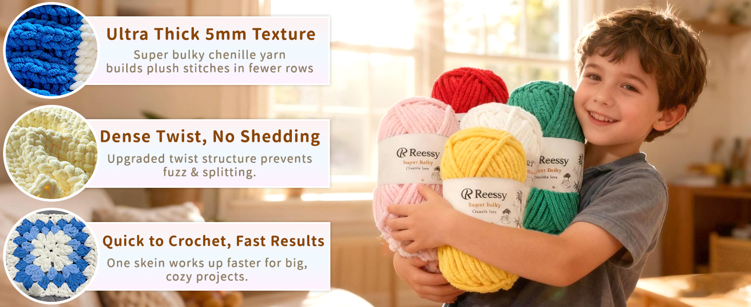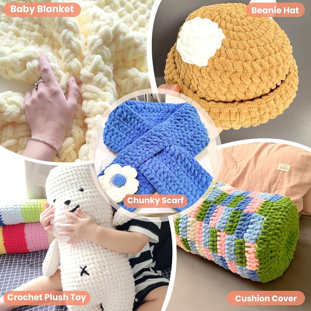Soft, Velvety Chenille Texture: Spun from soft polyester fibers, this chunky chenille yarn offers a dense, cloud-like feel that's gentle on hands. Ideal for soft bulky yarn projects that require both comfort and structure