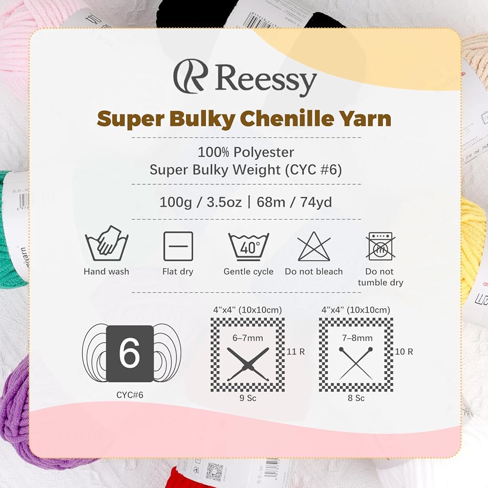 Thick & Plush Super Bulky Yarn: CYC #6 super bulky chenille yarn with a 5mm diameter, perfect for chunky crochet and knitting projects. The thicker gauge works up quickly, creating warm, plush fabrics with fewer stitches