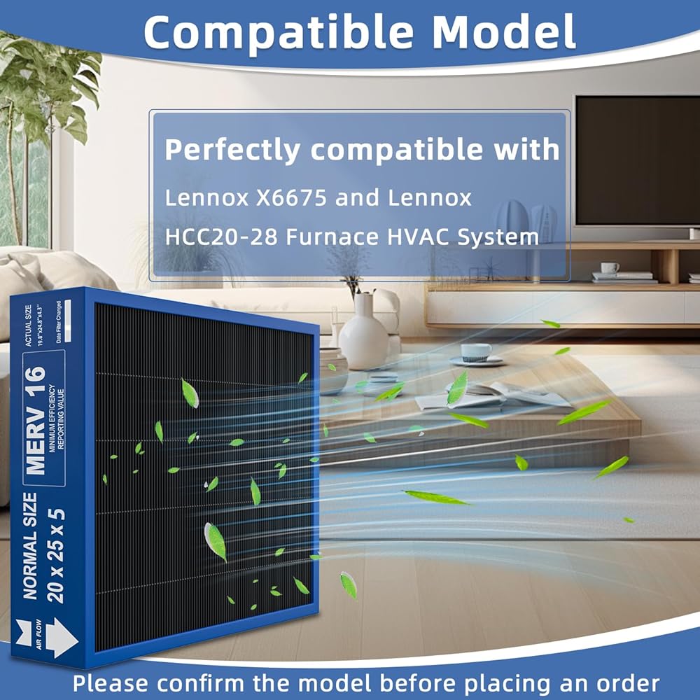 【Compatible model】Our Merv 16 Carbon Home Furnace Filter is compatible with Lennox X6675 and Lennox HCC20-28, Part Number HCF20-16. Please confirm the model before ordering