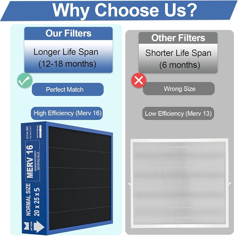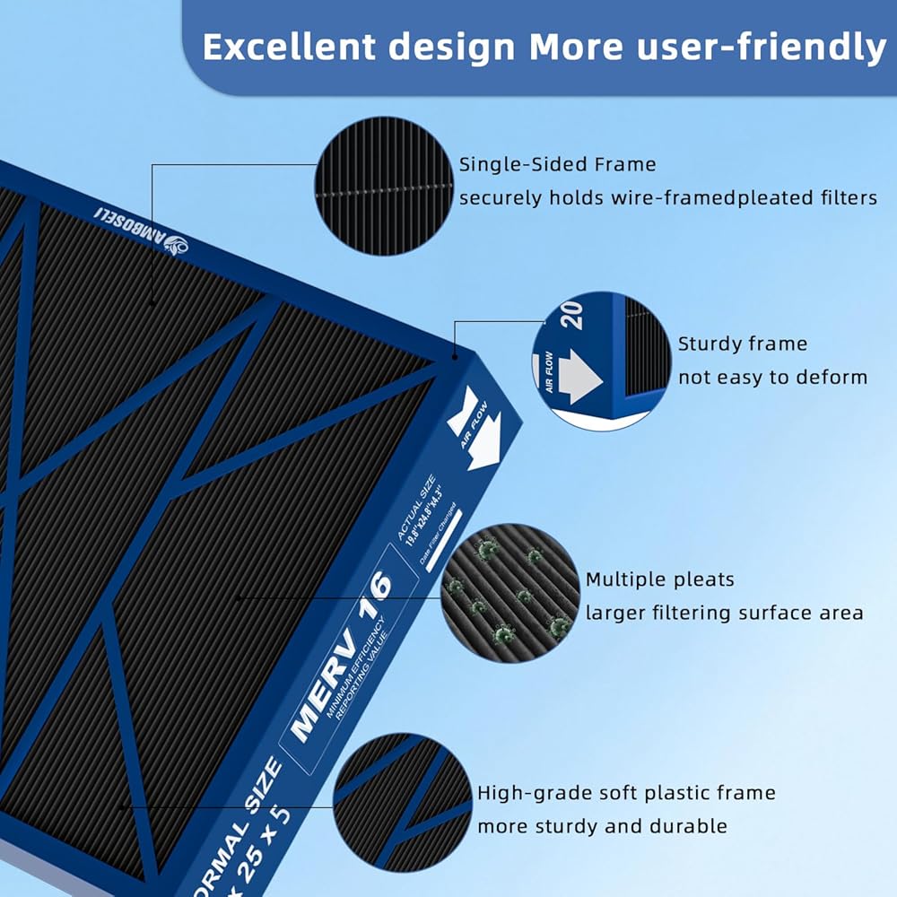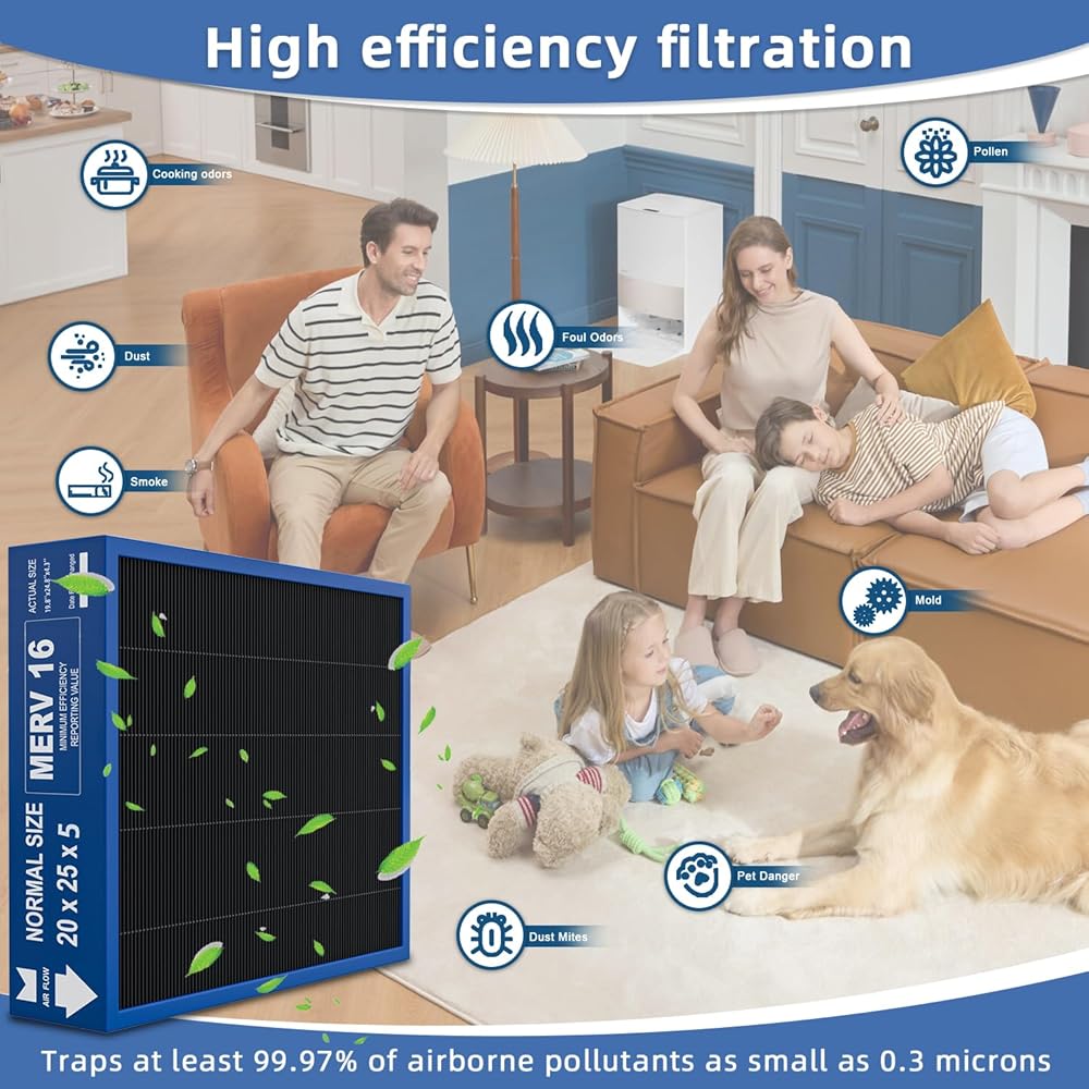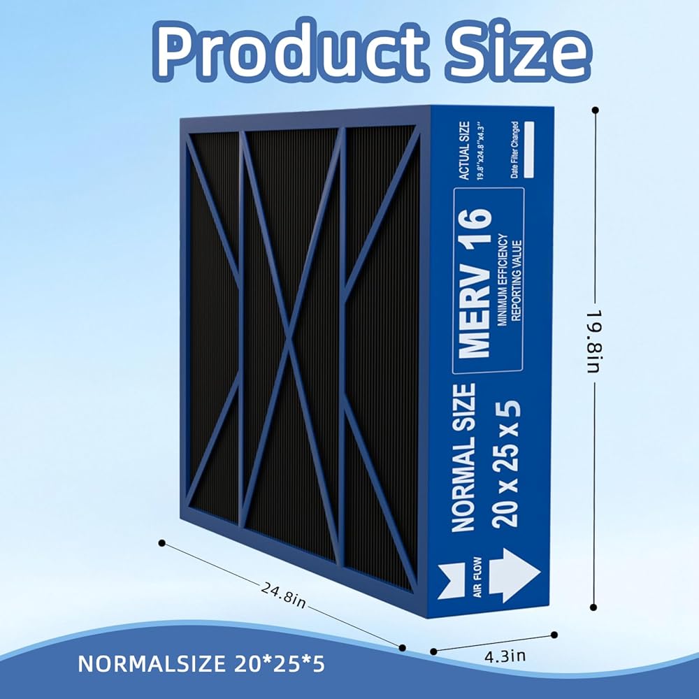 20x25x5 Merv 16 Air Filter Compatible with Lennox X6675 and Lennox HCC20-28 Furnace HVAC System, Activated carbon deep filtration, Part Number HCF20-16, (actual size:19.8" x 24.8" x 4.3")