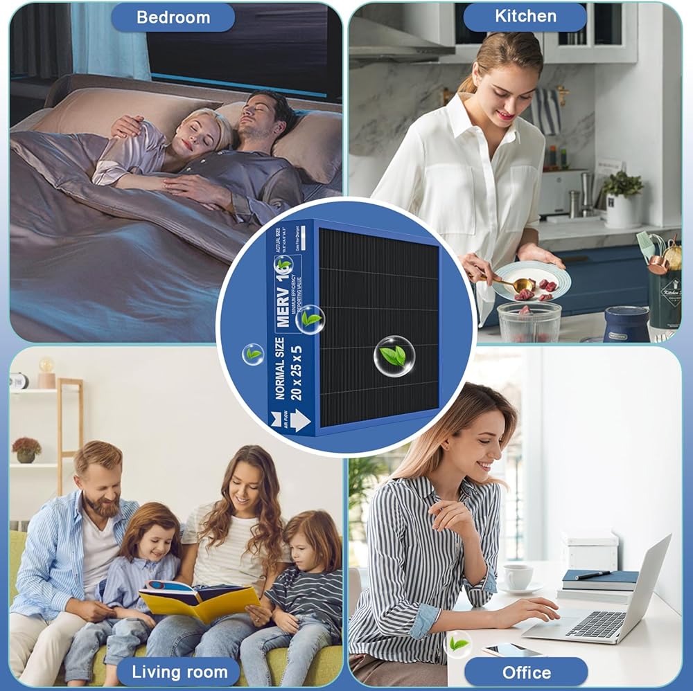 【Efficient filtration】Our filter has an MERV16 filtration rating, which can capture airborne particles as small as 0.3 microns, with an efficiency of 99.97%. Effectively filters wildfire smoke, seasonal pollen, vehicle exhaust, kitchen odors, and other odors. It's specifically customized for homes with babies, smokers, and those who cook often